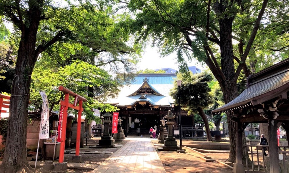 鬼子母神社的缘起有故事。公元1561年(永禄四年),有一个农民(另一种说法是家臣)在这块土地上干农活,一锹下去发现了一个闪亮的东西,挖出来一看好像是一个佛像。这与中国农民在陕西一锹下去,发现了秦代兵马俑的故事有点相似,所发现东西的价值则完全不是一回事。这个农民还算实诚,把这个“佛像”送到附近的寺院——东阳坊(现在已经成为废寺),住持称这就是“鬼子母神像”。于是,他就把这个“佛像”献给东阳坊了。