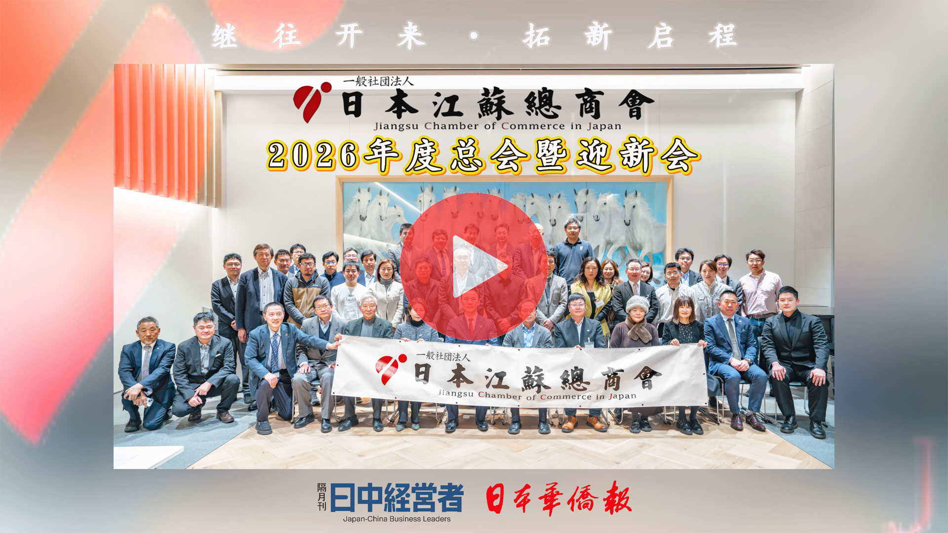 2月20日,日本江苏总商会2026年度定期总会暨迎新会在东京召开,全体会员齐聚一堂,共商在日苏商发展大计。丙午马年,奋楫开局,快马加鞭的日本江苏总商会将创造更多骄...