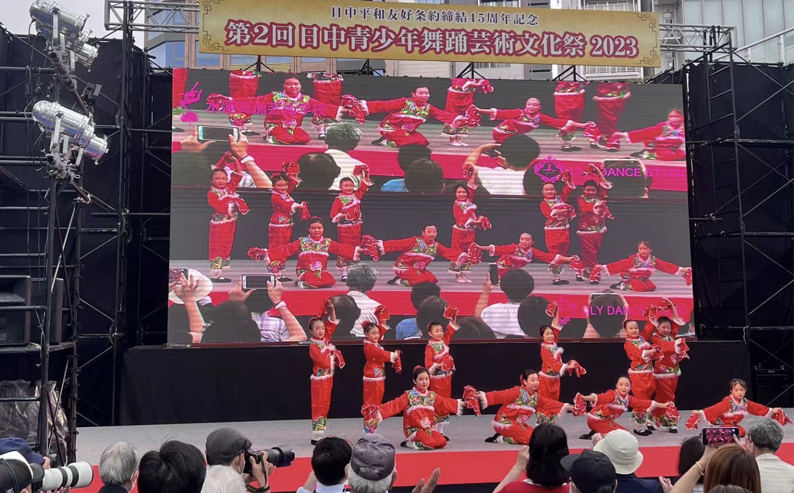 上午10时,在一阵劲爆的太鼓演奏声中,第二届中日青少年舞蹈艺术文化节正式拉开帷幕。中国驻名古屋总领事杨娴、日本国会日中友好超党派议员联盟干事长近藤昭一、名古屋市副市长松雄俊憲、日中友好协会理事长冈崎温、《人民日报海外版》日本月刊总编蒋丰、乒乓球奥运银牌得主福原爱、中国歌坛巨星程琳、日本华文教育协会会长颜安、中部日中经济交流会会长大矢裕慈、名古屋市政资料馆馆长铃木诚二、中日新闻社顾问大岛寅夫、东邦瓦斯株式会社代表取缔役副社长纪村英俊、主办方代表名古屋华助中心主任郑兴、山田观光株式会社社长山田浩及中部日本政企财经、文化艺术、侨团侨商各界嘉宾六十余人和数百名中日两国民众出席了开幕式。爱知县知事大村秀章出席了第二届中日青少年舞蹈艺术文化节的闭幕式。
