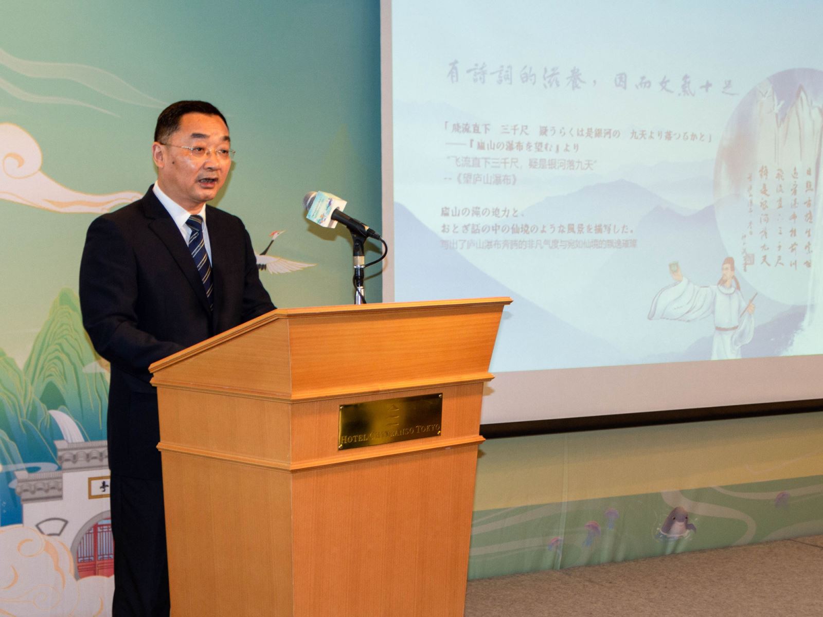 九江市人民政府副市长杜少华在致辞中,向到场嘉宾们讲述了一段美好的“浔阳梦”。他强调,九江自古享有名山、名江、名湖、名城之美誉,近年来依托丰富的文旅资源以及国家历史文化名城的金字招牌,坚持以文塑旅、以旅彰文,不断探索文旅融合发展之路,为海内外游客提供出色的旅游体验。他热情邀请日本朋友前来九江,开启一场山水之旅、文化之旅、民俗之旅、美食之旅。