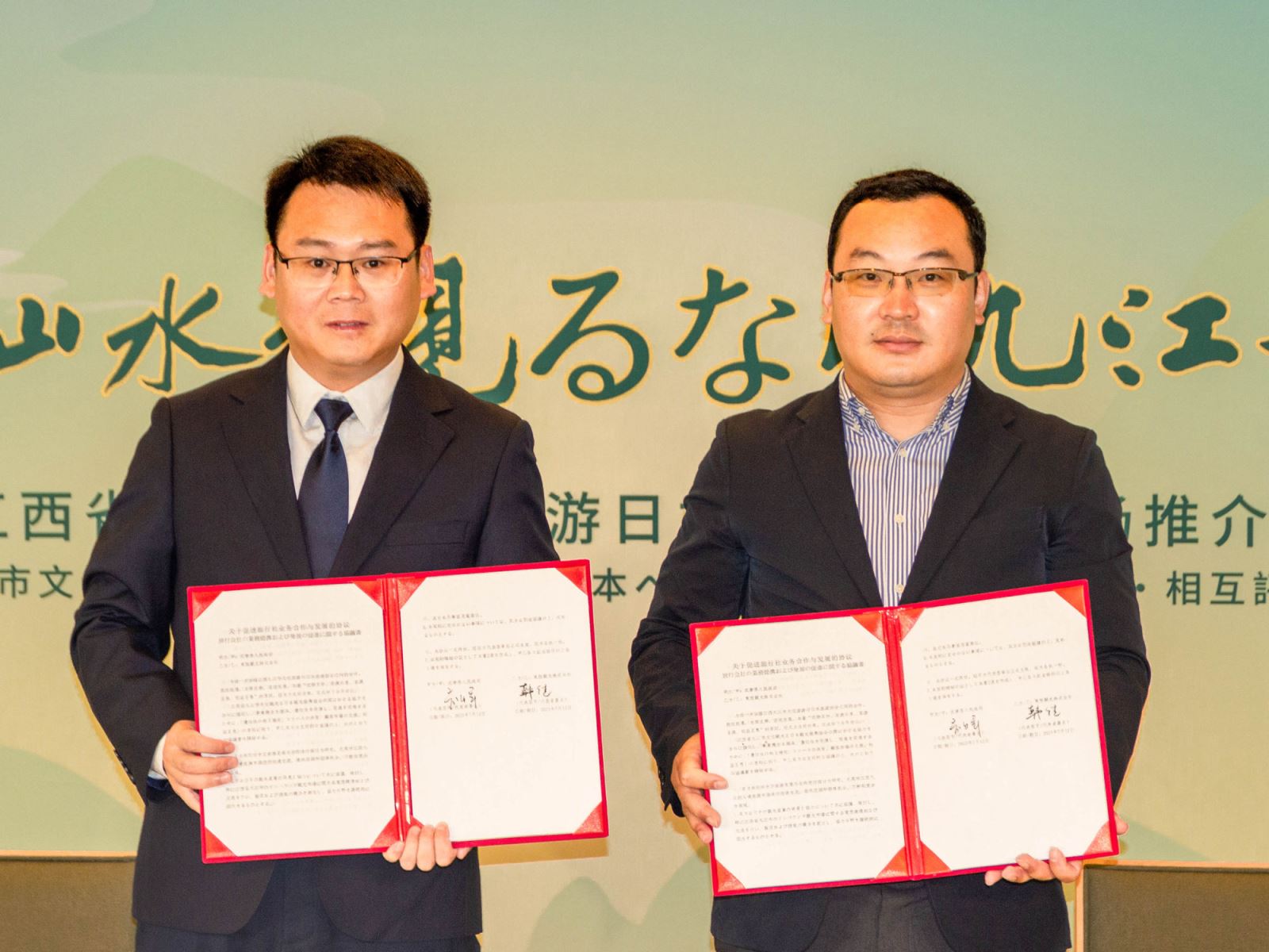 活动至此,中日双方嘉宾深感两地资源互补,文旅合作发展潜力巨大。武宁县人民政府副县长颉勇军还发布了九江市“引客入浔”奖补政策。陈吉田顾问与日中国际旅行株式会社社长马晓平,刘捷县长与海洋观光旅行社经理唐泽浩一,颉勇军副县长与东胜观光株式会社代表韩佳,这三组东京与九江间的旅行社战略合作签约仪式也将活动气氛推上了高潮。