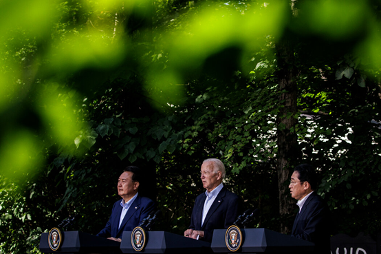 由拜登主导的美日韩领导人戴维营会晤在全球聚焦中进行。这场“别开生面”的密会涉足多个重要敏感领域,高调发表所谓带着“精神”的联合声明,并就定期举办联合军演、朝核、俄乌冲突达成一致。更令人不齿的是,虽然拜登一再“暗人”假说“明话”,声称三方峰会不针对中国,但声明中粗暴干涉中国内政,对南海和台海局势指手画脚,继续一副全球政治“祖师爷”模样,也把中国摆在了明眼人都看得到的话题对象上。