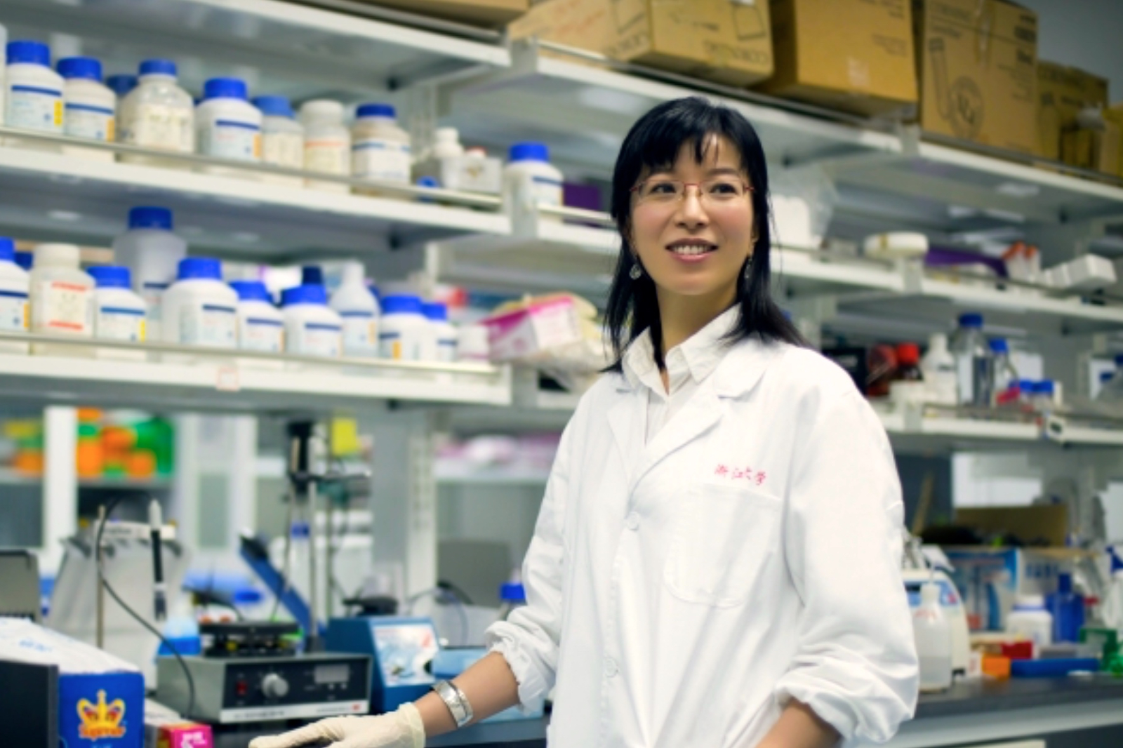 (在实验室的胡海岚教授)
