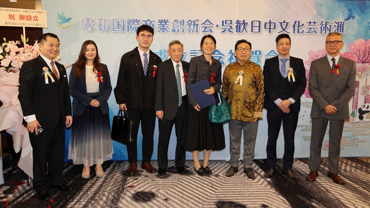 中国驻日本大阪总领事薛剑也代表总领事馆向成立仪式致以衷心的祝贺,高冲领事代读了致辞。薛剑总领事指出,中日经贸、文化交流历史积淀深厚,是两国关系重要组成部分,“期待零和国际商业创新会暨吴欢中日文化交流汇更好地发挥桥梁纽带作用,同日本社会各界加强交流联动,举办丰富多彩的文艺、经贸交流活动,增进两国民众相互理解和友好感情,为两国民间友好不断注入源头活水,助力构建契合新时代要求的中日关系。”