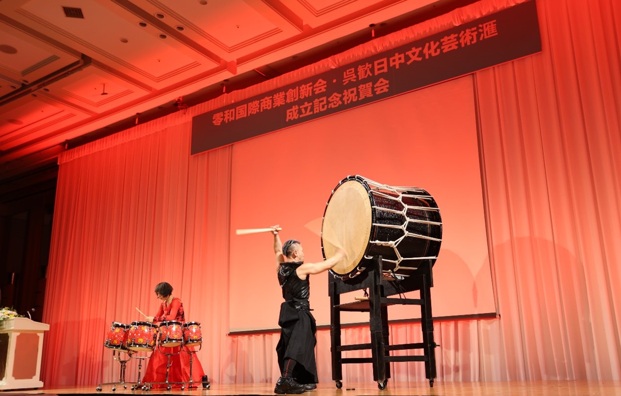 由中日两国表演者联袂献上的气吞山河、豪情凌云的和太鼓表演,为成立仪式拉开了帷幕。