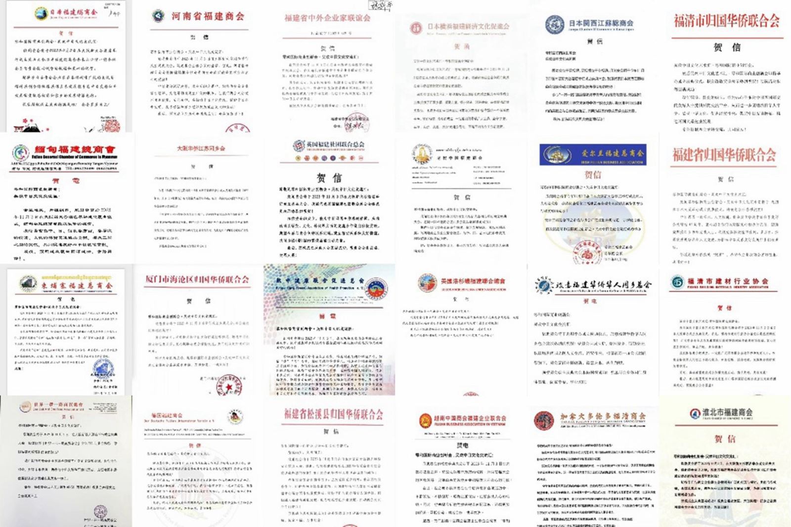 四海共举,五洲同贺。日本、缅甸、柬埔寨、爱尔兰等国家的福建总商会,福建省、江苏省、连云港市、福清市、厦门市海沧区、松溪县的归国华侨联合会,河南省和淮北市的福建商会,以及世界一带一路商贸总会、老挝中国福建商会、德国福建商会、英国福建社团联合总会、欧中健康联合促进总会、越南中国商会福建企业联合会、澳中友好发展协会、旅意福建华侨华人同乡总会、美国洛杉矶福建联合总会、加拿大多伦多福清商会、大阪华侨江苏同乡会、日本横滨福建经济文化促进会、日本关西江苏总商会,澳大利亚葡萄酒促进协会、福清市建材行业协会,福建省中外企业家联谊会、青岛西海岸文化艺术交流中心、天津市外商投资企业协会等五十多家单位及机构先后发来贺电贺信,公明党众议院议员冈本三成也特别发来贺电祝贺零和国际商业创新会暨吴欢中日文化交流汇的成立。