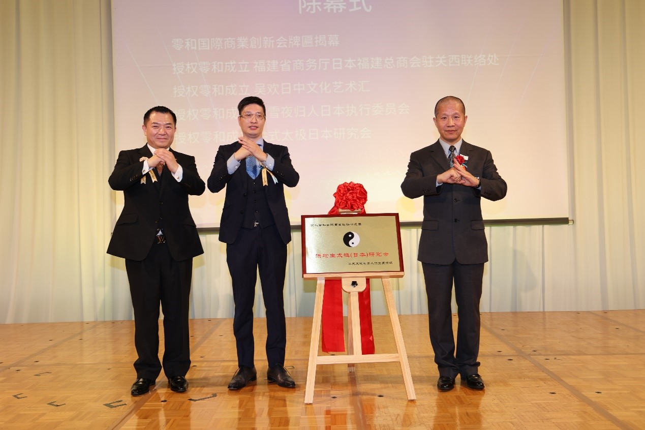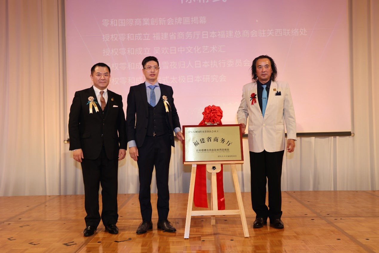 零和国际商业创新会被认定为“福建省商务厅日本福建总商会驻关西联络处”,日本福建总商会会长山口信一将代表信任与责任的铭牌交到古川拓海(陈海)会长手里。