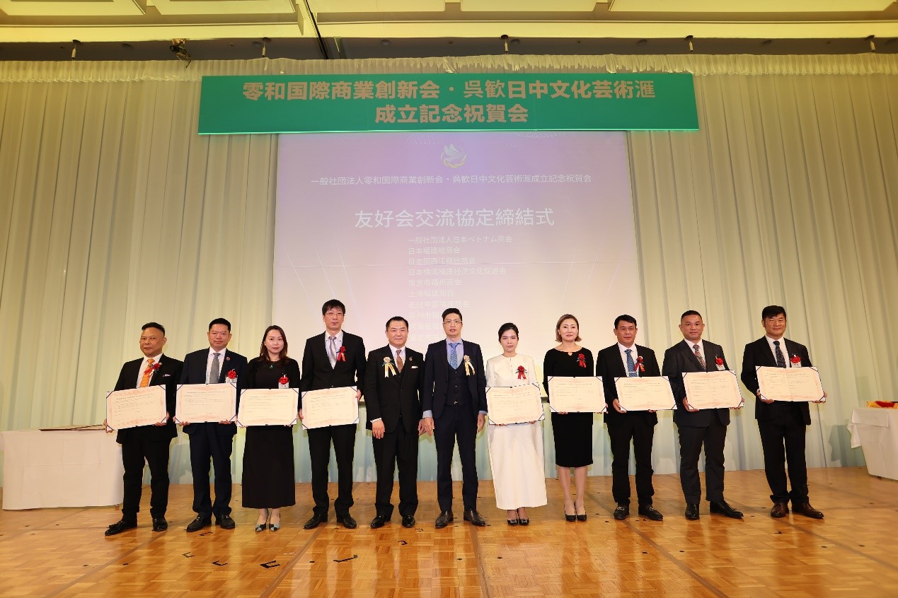 一般社团法人越南商会会长范氏秋玄、日本福建总商会执行会长王梅文、日本关西江苏总商会执行会长古贺雅子、日本横滨福建经济文化促进会会长游群、上海福建商会名誉会长占万龙、老挝中国福建商会会长陈熊官、苏州市福建商会永远名誉会长黄亚强、河南省福建商会秘书长陈平华、淮北市福建商会会长俞爱斌,南京市福州商会会长潘清华分别与古川拓海(陈海)会长交换了契约书,标志着各自所在机构或组织与零和国际商业创新会缔结友好关系,互通有无、协同发展,共创美好未来。
