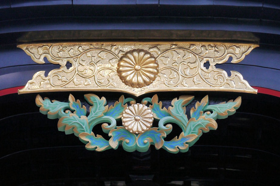 回过头来我们再来看日本天皇的象征——十六瓣八重表菊纹,事实上,根据平安末期法然上人的《往生大要抄》记载,当时皇室御用车的御用纹饰是牡丹,而非菊花,之所以菊花成为了天皇乃至皇室的御用纹饰,那是拜后鸟羽天皇所赐,檀浦之战后,天皇把皇室三大宝物之一的天丛云剑弄丢了,神器不全惹非议,后鸟羽天皇就决定重铸新剑,因他喜爱菊花,于是十六瓣八重菊花纹饰镶嵌在了御用宝剑手柄处,后来的几任天皇也都把这个菊花私印继承了下来,渐渐成为惯例后,十六瓣八重表菊纹就作为皇室纹章固定下来了。 这里的“十六重”就是指“十六瓣”,至于“八重”里的“八”并非指菊花有八重,只是一个象征多数的意思,在这里可以理解为层层叠叠,就犹如我们形容多数时经常使用的“三”或“九”,和东北俗语中的“老鼻子了”(非常多)差不多,仅此而已。