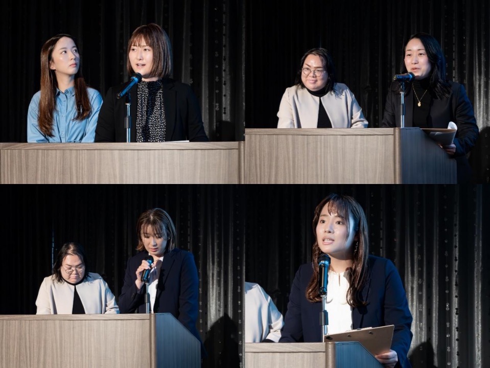 采购课主管冈田祥子、员工代表黄冠茹,业务部物流课主任加藤有纪、营业部营业支援课主任大脇京子及员工代表谷端真依相继发言,从销售支持、订单应答及物流管理等层面介绍了海外营业的情况,以及在强化RPA赋能自动化作业、强筑智能物流系统,调整供应链、加强与海外合作伙伴的联系,提高业务效率和市场响应速度等方面所取得的优化成果。