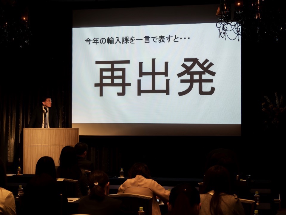 刚刚结束海外考察返回日本的J&C(吉安食)集团取缔役社长越智成幸(魏成炳),系统地回顾了公司由小规模起步至今逐步壮大的风雨历程,并简明扼要地揭示了2024年度企业发展的关键词——挑战,他还强调了加强进口业务、积极开拓新领域、完善人事制度、优化企业运营等工作重点,寄望员工与企业一道,再接再厉,不断挑战,取得长足发展。
