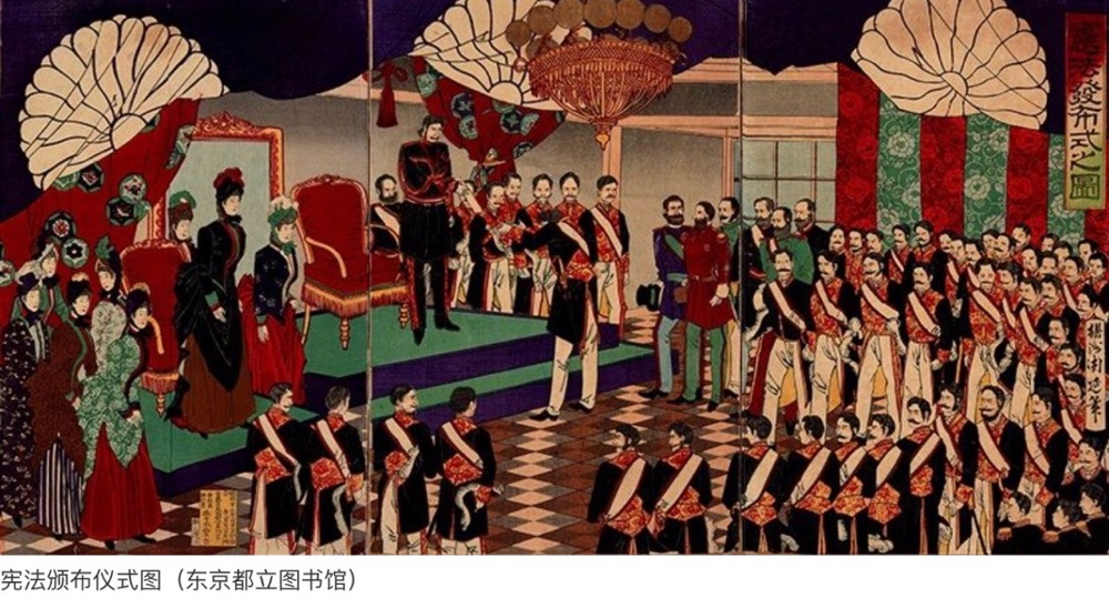 如果说“大化改新”是以中国化为最高理想的话,那么,“明治维新”就是以西洋化为最高理想的典范。千余年后,在位45年的明治天皇,建立了卫皇制专制政权,他宣布版籍奉还、实行废藩置县、改革地税、制定帝国宪法、招聘西方专家、并像当年派出遣隋使遣唐使般向西方派出留学人员,大力发展教育,培养本国人才,然后像扔破靴子一样扔掉了曾经虔诚地学习模仿过的中国文化。