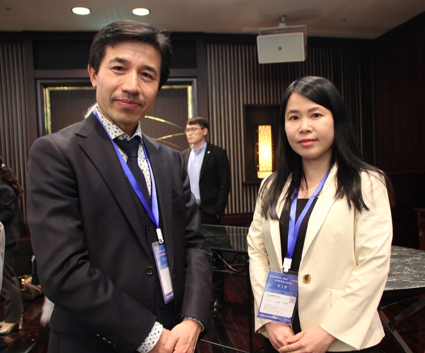 随后,中国驻日本大使馆经贸商务处代表张涛发表致辞。张涛向日本企业家强调了中国政府继续对外开放的决心,并阐述了国际层面上为推动外资在中国发展的政策。他邀请日本企业家们到中国走一走,亲身感受中国速度,体验中国温度,并表示投资中国就是投资未来,希望日本企业把握机遇,收获成功。