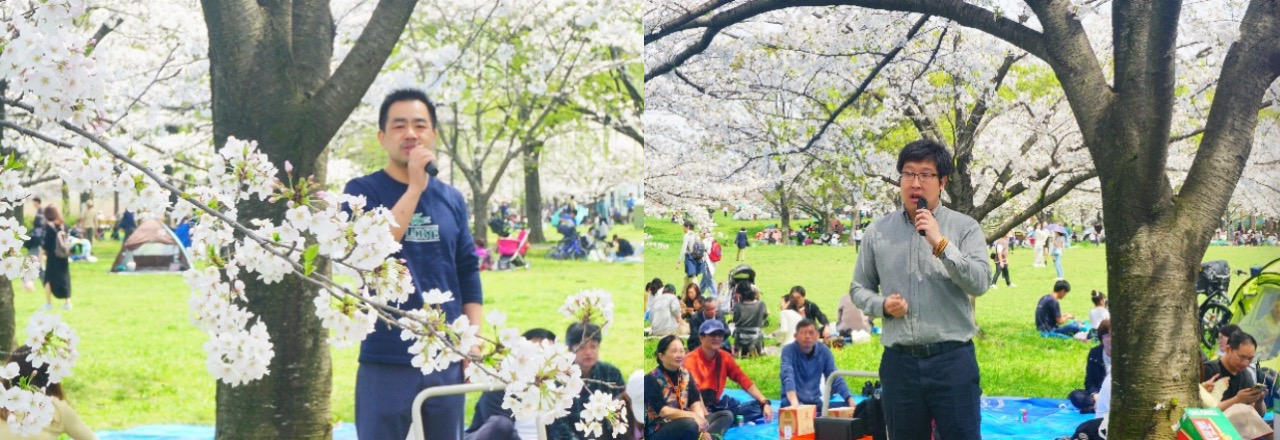 博协会长徐荣、科盟会长杨克俭、留日同学总会会长刘恩玺、日中科学技术文化中心专务理事贾广鑫,日中AI·IoT产业联盟理事堺夏美,防灾环保研究会事务局长宋志毅以及燕赵会会长、防灾环保研究会名誉会长马贵臣依次致辞,介绍各自所在团队的情况,寄望在日华侨华人科技工作者工作顺利、事业发展、密切联系。联合赏樱活动由博协事务局的李天南博士和徐婷婷主持。