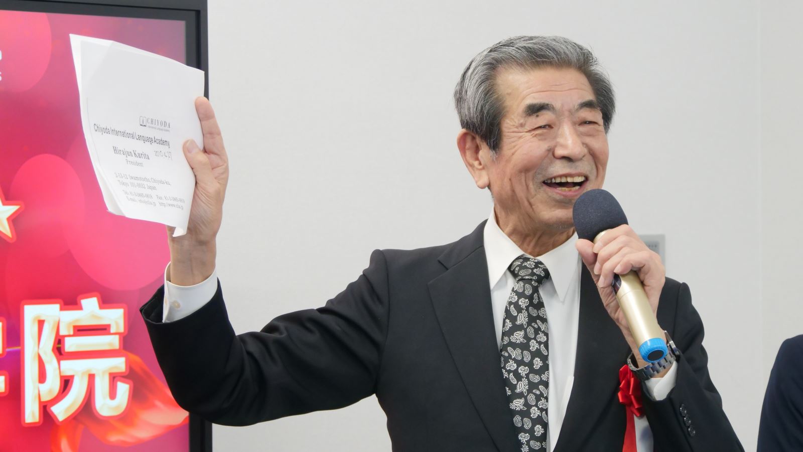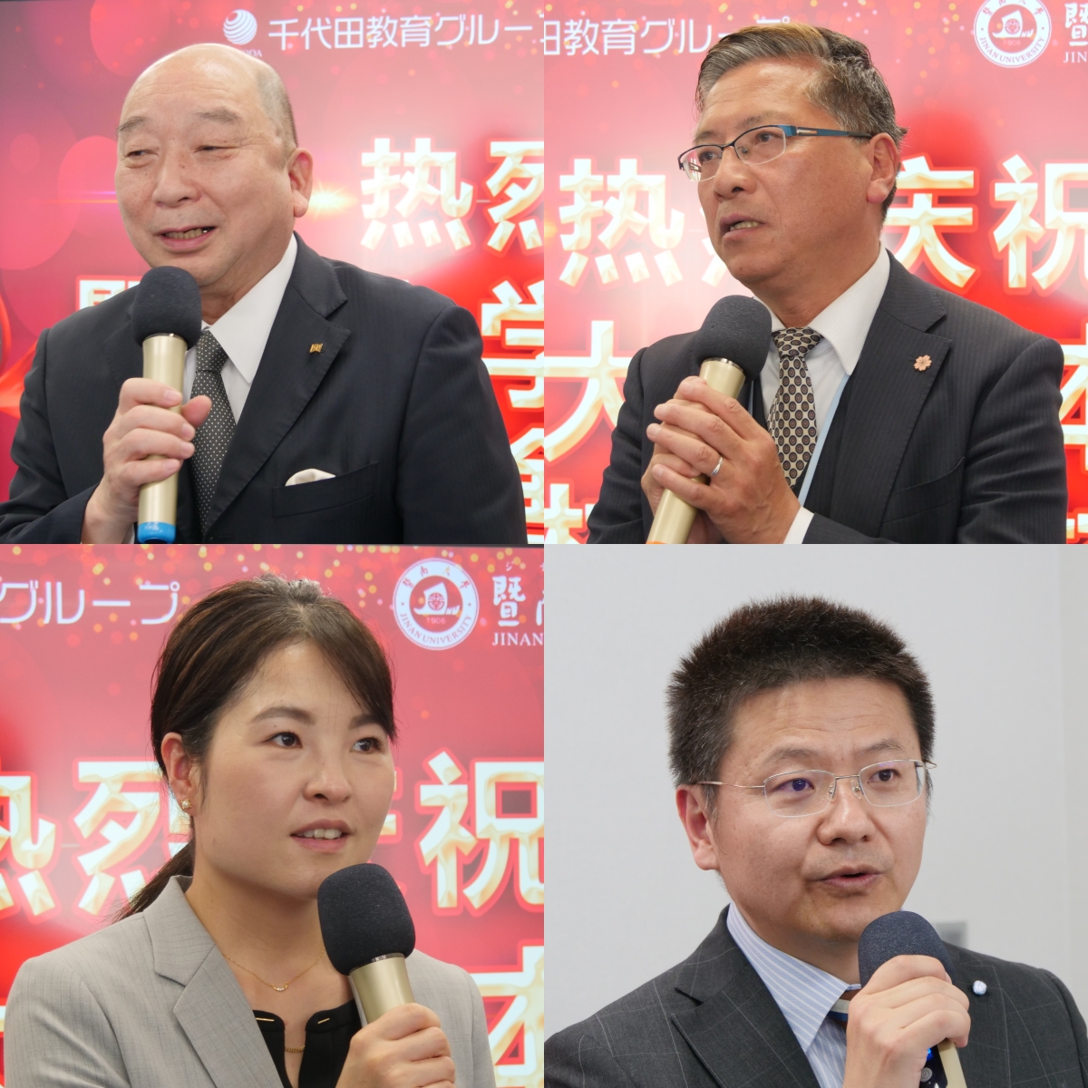 日本政治经济学者、原参议员滨田和幸、日中友好会馆日中学院院长斋藤法雄先后发表致辞。日本中国友好协会常务理事永田哲二细述与千代田教育集团相识14年的缘分并送上祝福。