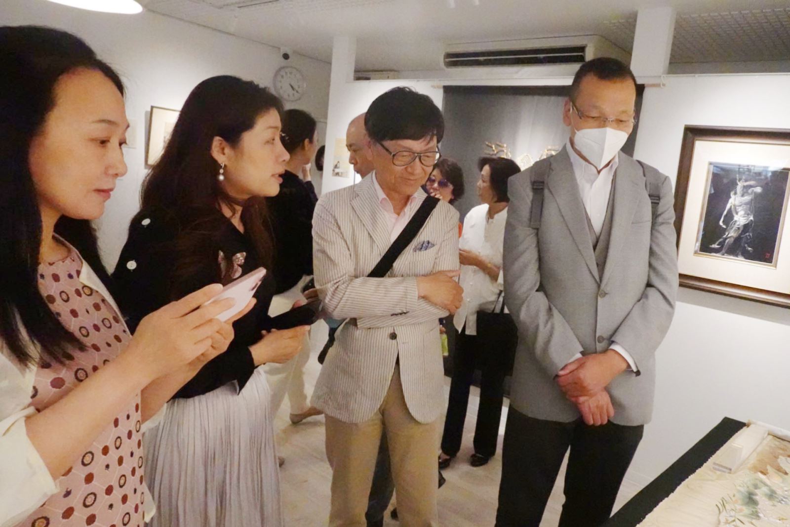 5月18日,东京Art Space 89艺术空间迎来该展的VIP开幕仪式。来自日本艺术界、经济界、文化界、投资界和传媒界的四十余位嘉宾出席开幕式,观摩佳作并与周雪萍进行了深入交流。