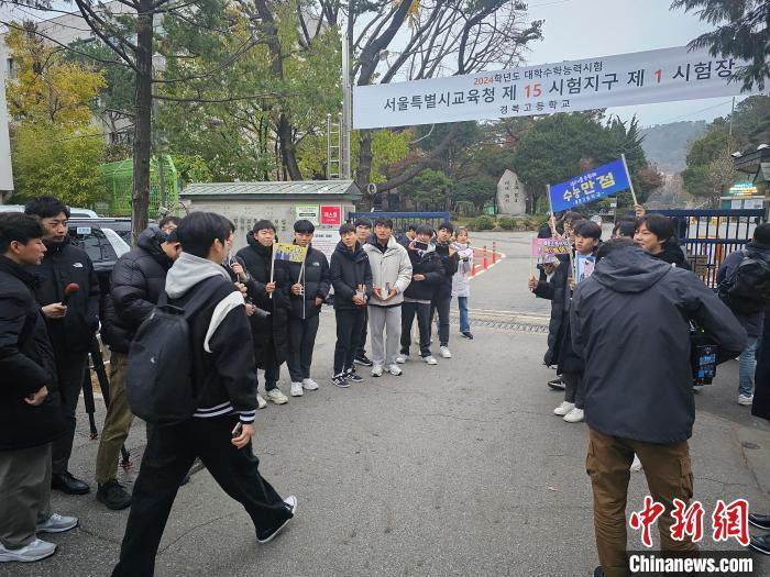 2023年11月16日,韩国举行“2024学年度大学修学能力考试”(高考)。图为当日7时许,考生进入首尔市钟路区一考场。中新社记者 刘旭 摄