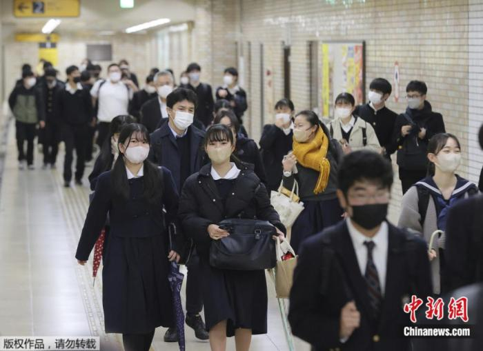 当地时间2023年1月15日,日本福冈市,学生们在参加完高考后,从考场走向车站。