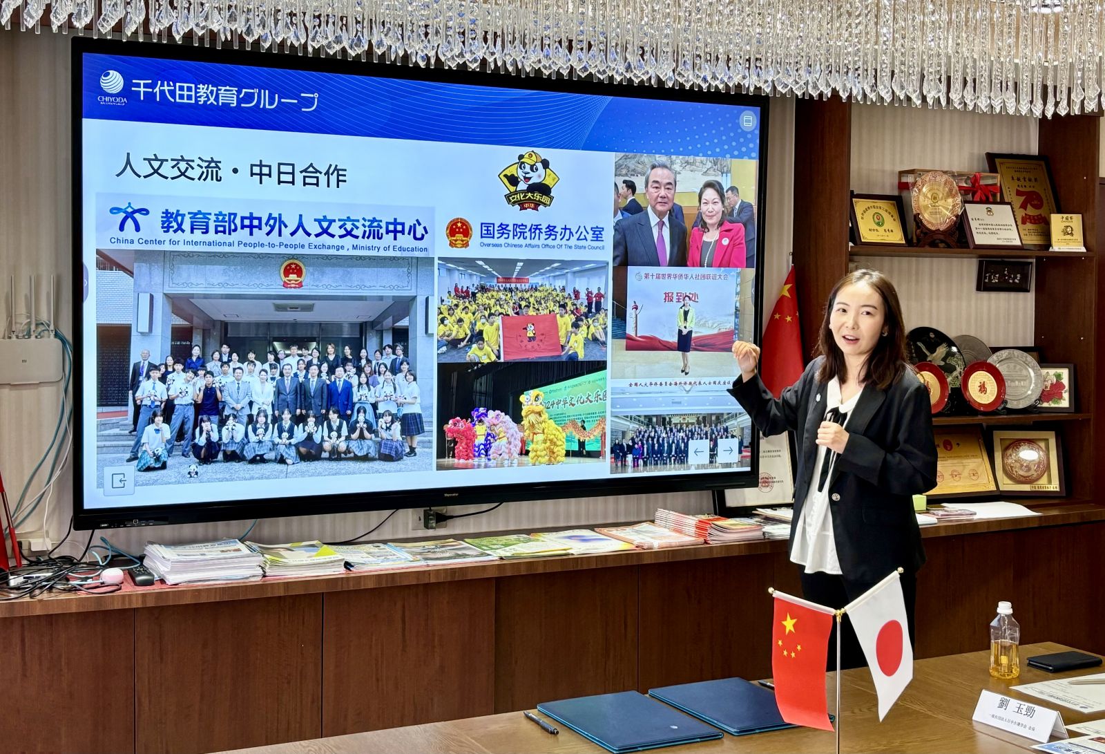 随后,担任本次交流会主持人的千代田教育集团宣传负责人白瑞雪介绍了集团的情况。据介绍,千代田教育集团是一家国际化、综合性的教育机构,历经20多年的快速发展,集团现有3家语言学校、3个升学指导学院、1家专门学校、1个日本国际教育机构评议会、1所中国民办普通高中,并与暨南大学合作共建暨南大学日本学院、暨南大学日本硕博研究中心。集团秉持“上善若水,厚德载物”的教育理念,致力于提供从学前教育到终身学习的一体化教育服务,积极推动中日人文交流,竭力为赴日留学、就业的年轻人和在日华人华侨提供全面优质的华文教育及支援服务。