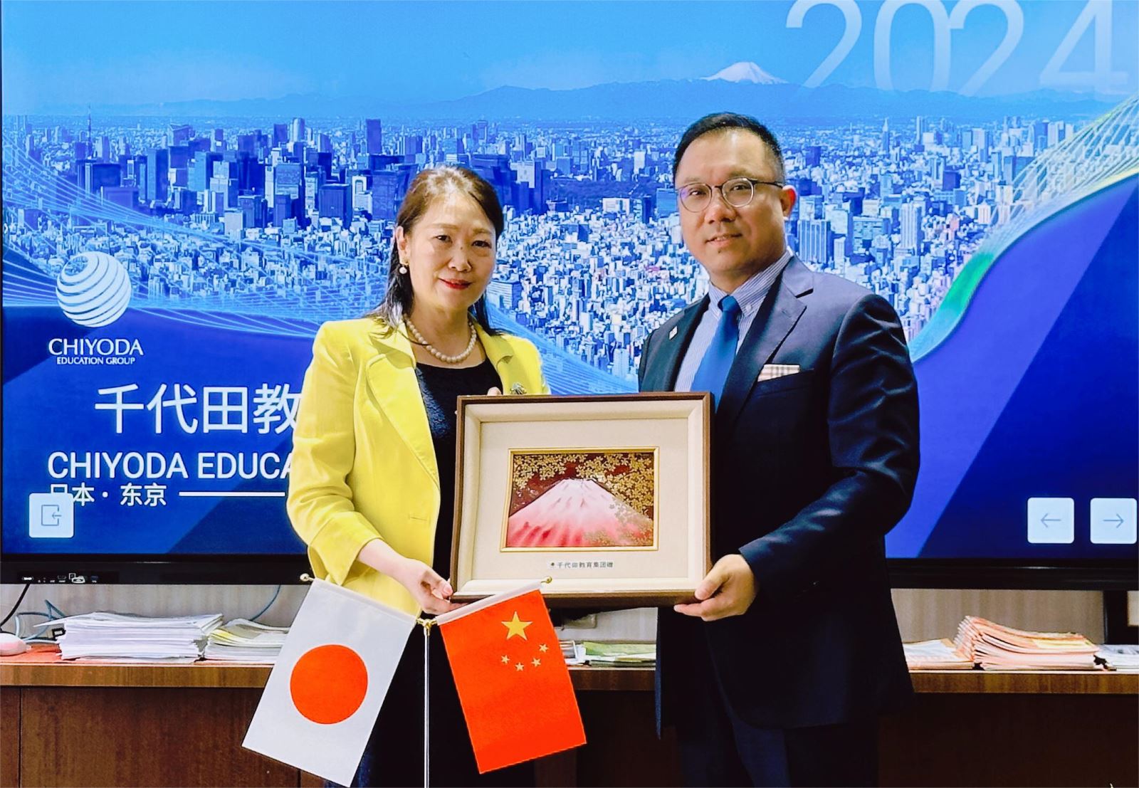 会上,千代田教育集团和康德教育集团签署战略合作协议,下一步,双方将加强以康养、旅游、动漫和日语教育为主的校际合作,这标志着双方在教育领域合作的新起点,也为推动教育资源共享和交流提供了新的平台。