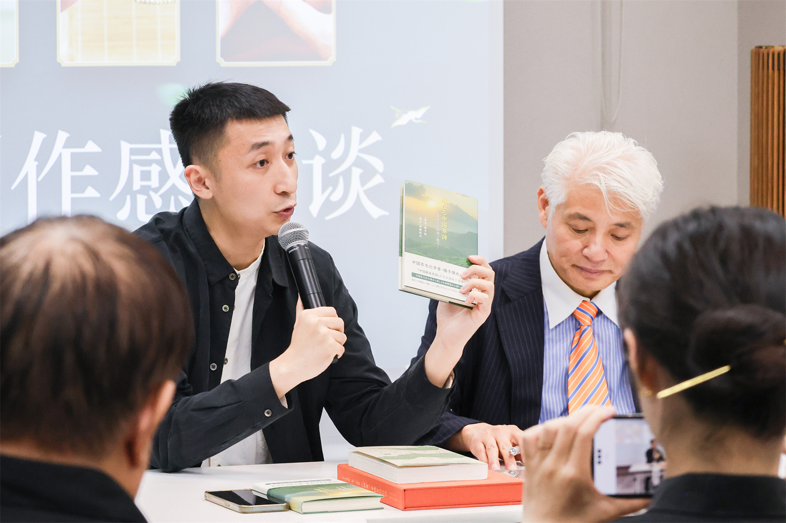 在热烈的掌声中,作者杨多杰和与会者分享创作体会。近年来,杨多杰专注于与茶相关的诗歌的整理工作,《最美日本茶诗》是他所作的第四本关于茶诗的专著。杨多杰用“自下而上”和“自上而下”,概括出中日茶文化在传播路线上的根本差异,并用“中国有诗人”“日本有茶人”区分中日茶文化传播者身份的不同。他还对比介绍了蒋丰总编辑所著《激荡千年:日本茶道史》(上海交通大学出版社 2019年7月版)以人为线索,自己所作《最美日本茶诗》则以诗为线索,希望把自己的研究成果和认识与日本学界以及社会人士分享,“激荡”出更多中日之间文化交流的浪花。他的发言深入浅出,引发到场嘉宾的积极回应。