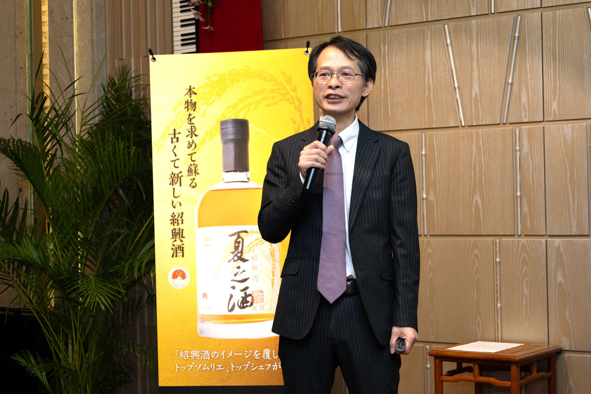 在活动上,日本侍酒师协会副会长君岛哲至分享了在今年4月前往绍兴研修考察的所见所感,时隔35年再次访华,重新认识了中国与绍兴酒。他发现绍兴酒工艺精细、品质卓越且对身体温和有益,即使大量饮用也不易引起宿醉。如今,绍兴酒已经成为他日常生活中不可或缺的一部分,不仅是美酒,更是具有养生功效的“中药”。