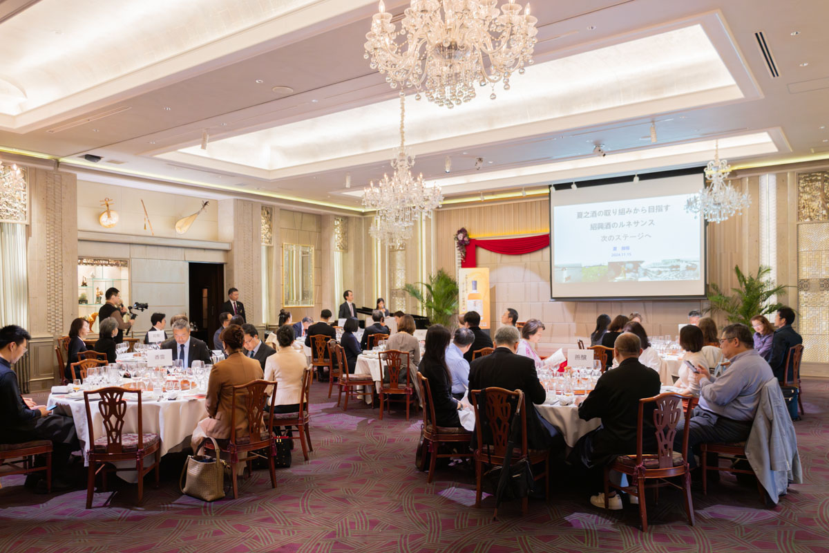 11月15日,在位于东京麻布十番的中华老字号——富丽华,夏之酒品鉴会隆重召开,夏之酒2019的花雕坛首次开坛。来自中日两国的企业代表、酿酒师、美食评论家、酒类文化研究者、媒体记者以及绍兴酒爱好者济济一堂。