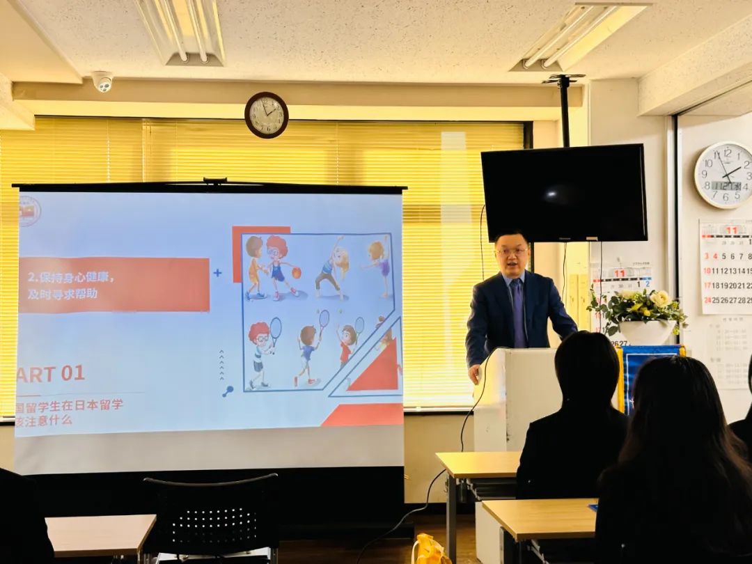 日前,为进一步提升在日留学生的安全意识,中国驻日本大使馆参赞郭军与侯书会、于海鹏、王璐等使馆工作人员代表,走进千代田教育集团,为留学生举办了一场别开生面的“平安留学”讲座。千代田教育集团的60余名留学生新生与教师代表,参加讲座并踊跃交流。
