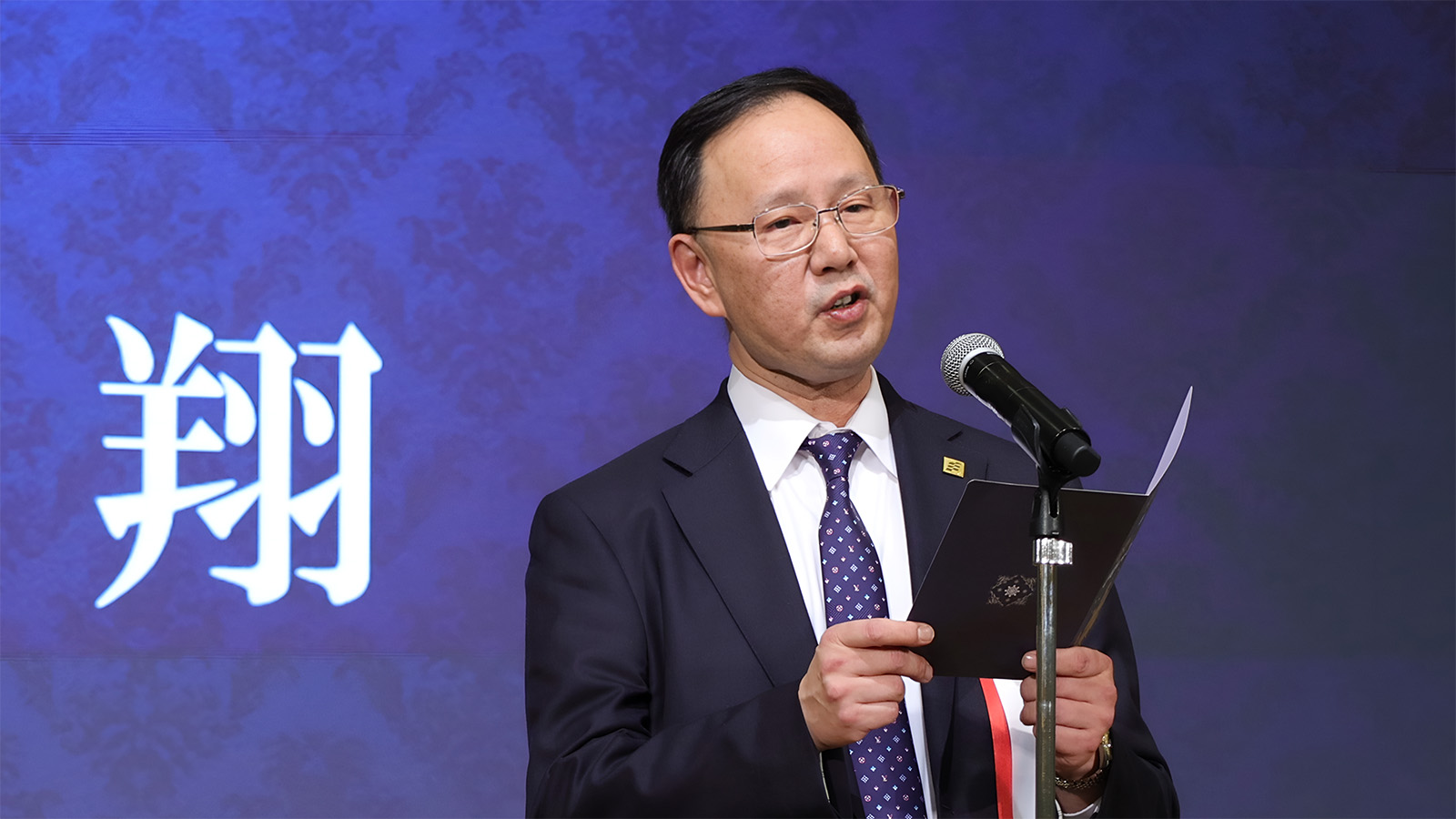 中日和平发展促进会副会长、前全日本空输株式会社中国室常任理事朱金诺致祝酒辞,祝愿JTM集团在接下来的2025年取得事业上更大的飞跃和长足的发展。