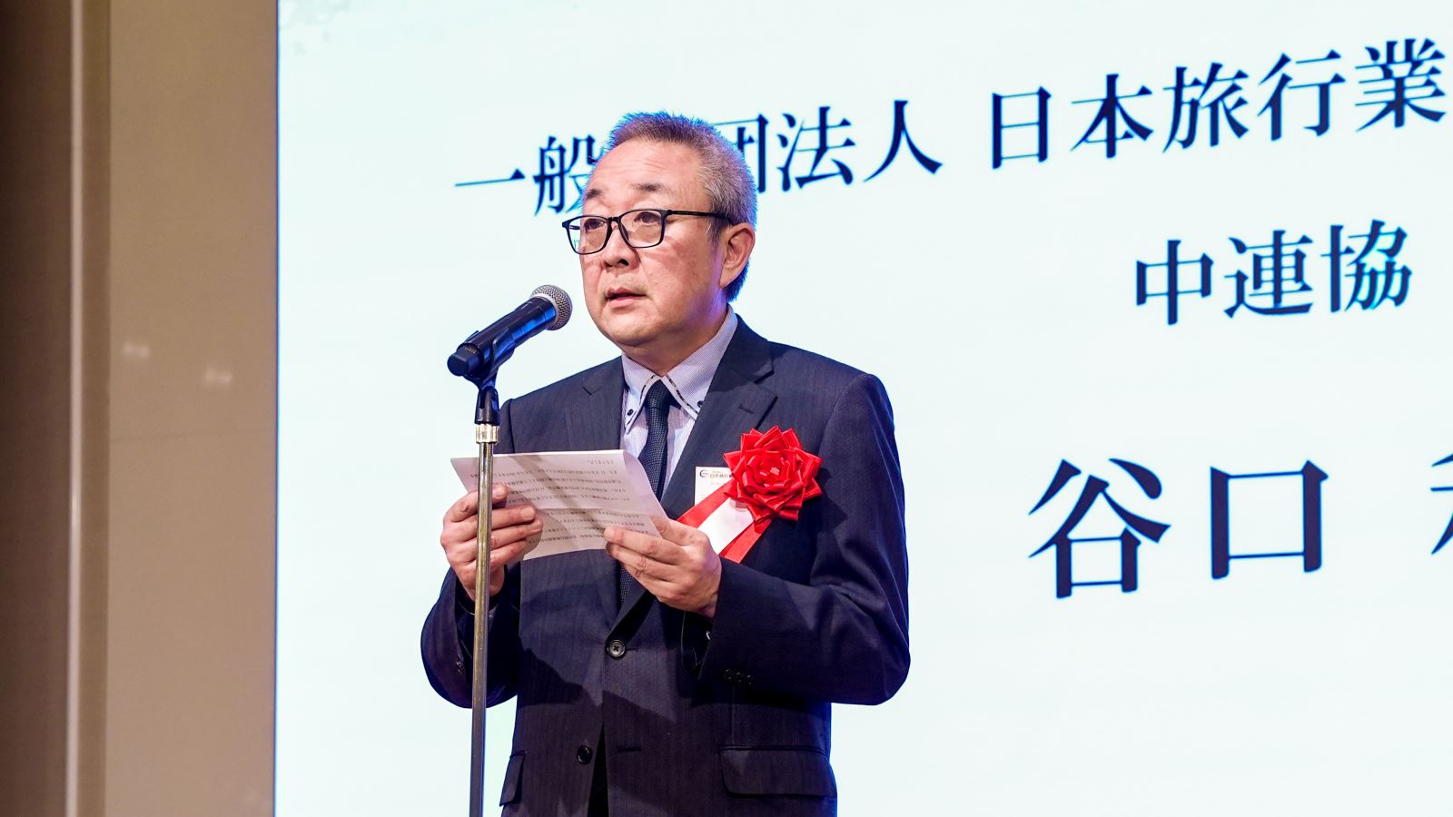 随后,日本旅行业协会(JATA)访日旅行推进部部长兼中联协事务局长谷口和夫,以一口流利而标准的中文,向在座的每一位嘉宾致以热烈的问候。他充分肯定了JTM集团在对接日本境内游、促进中日两国交流方面作出的贡献。开放入境后,仅2023年,JTM集团就对接超3300单入境业务,占据中联协业务总量的15%。旅游经济,在整个社会经济中的占比越来越重,JATA将继续支持以JTM集团为代表的业界同仁,取得长足发展!