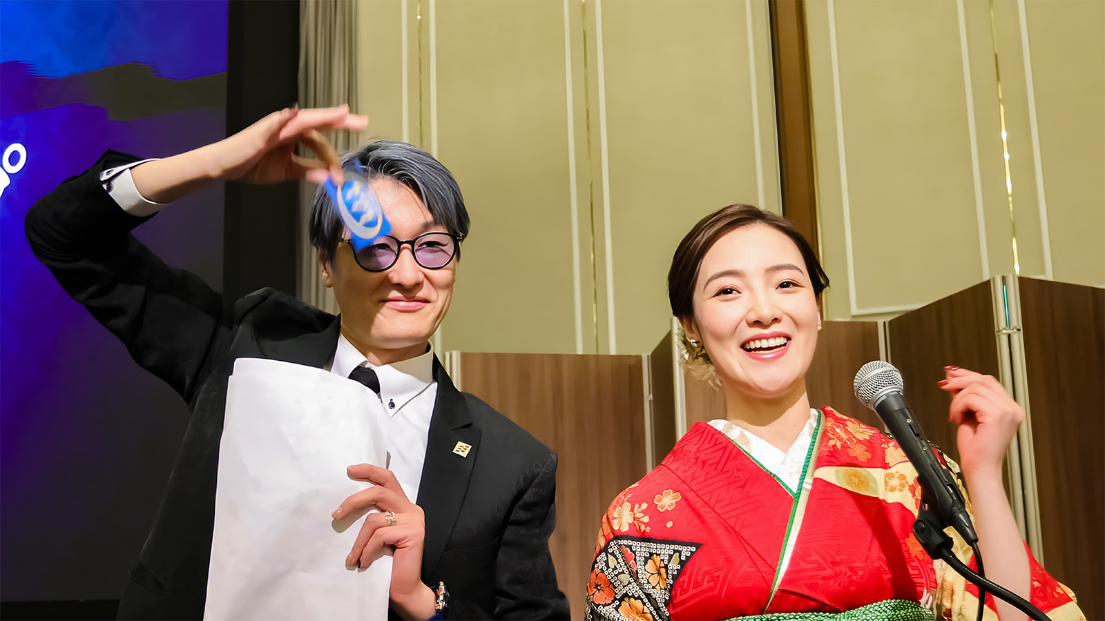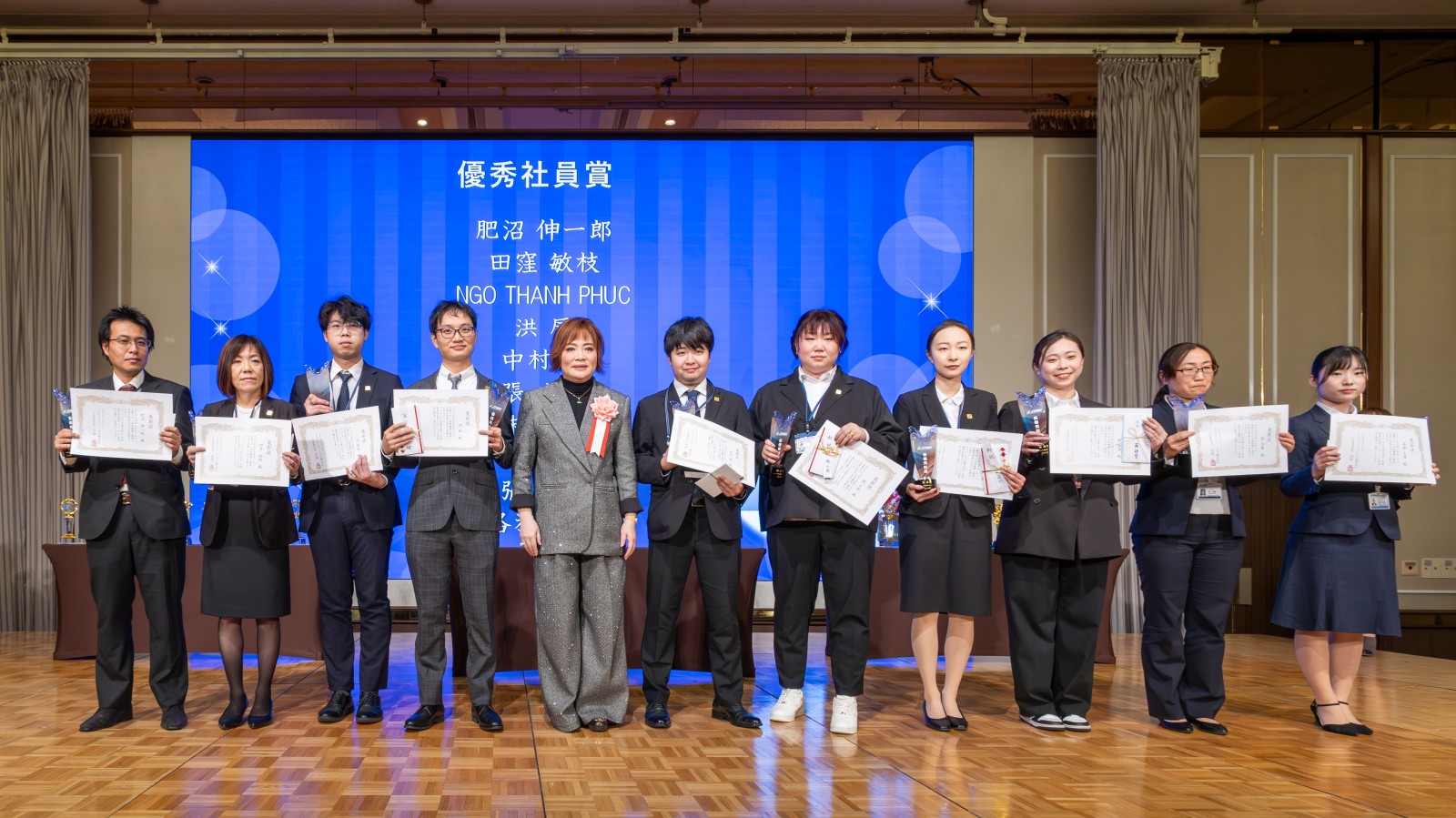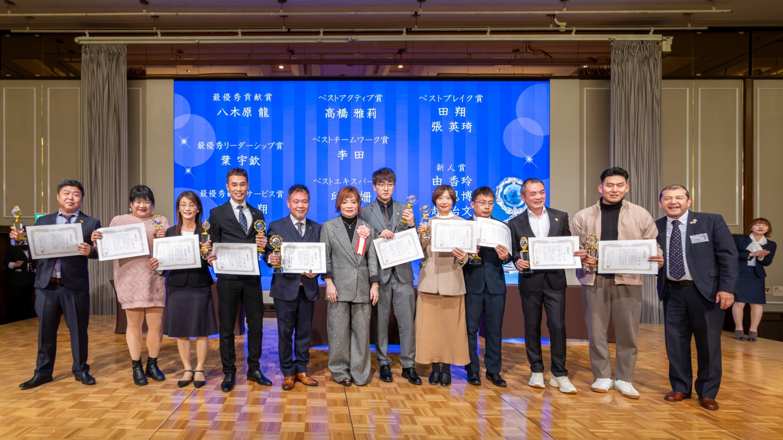 接下来的颁奖环节,获得“优秀员工”及“优秀导游”称号的员工代表及常年给予关注和支持的合作伙伴代表登台领奖。JTM集团取缔役社长山田丽华将镌刻着“常年助力企业奖”的奖杯交到《人民日报海外版》日本月刊总编辑蒋丰手中,留下象征文旅携手,共铸优良营商环境、促进两国人文交流的重要瞬间。