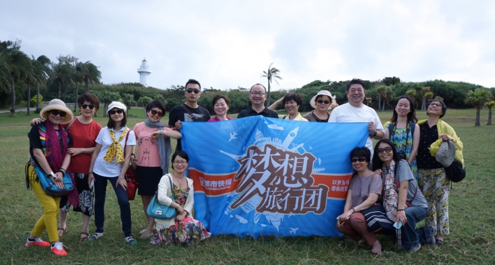 2014年秋冬之交,在杭州都市快报任职的徐迅雷(中),率领都市快报梦想旅行团畅游台湾,在宝岛最南端鹅銮鼻公园合影,远处就是白色的鹅銮鼻灯塔。 台湾导游袁介虎 摄