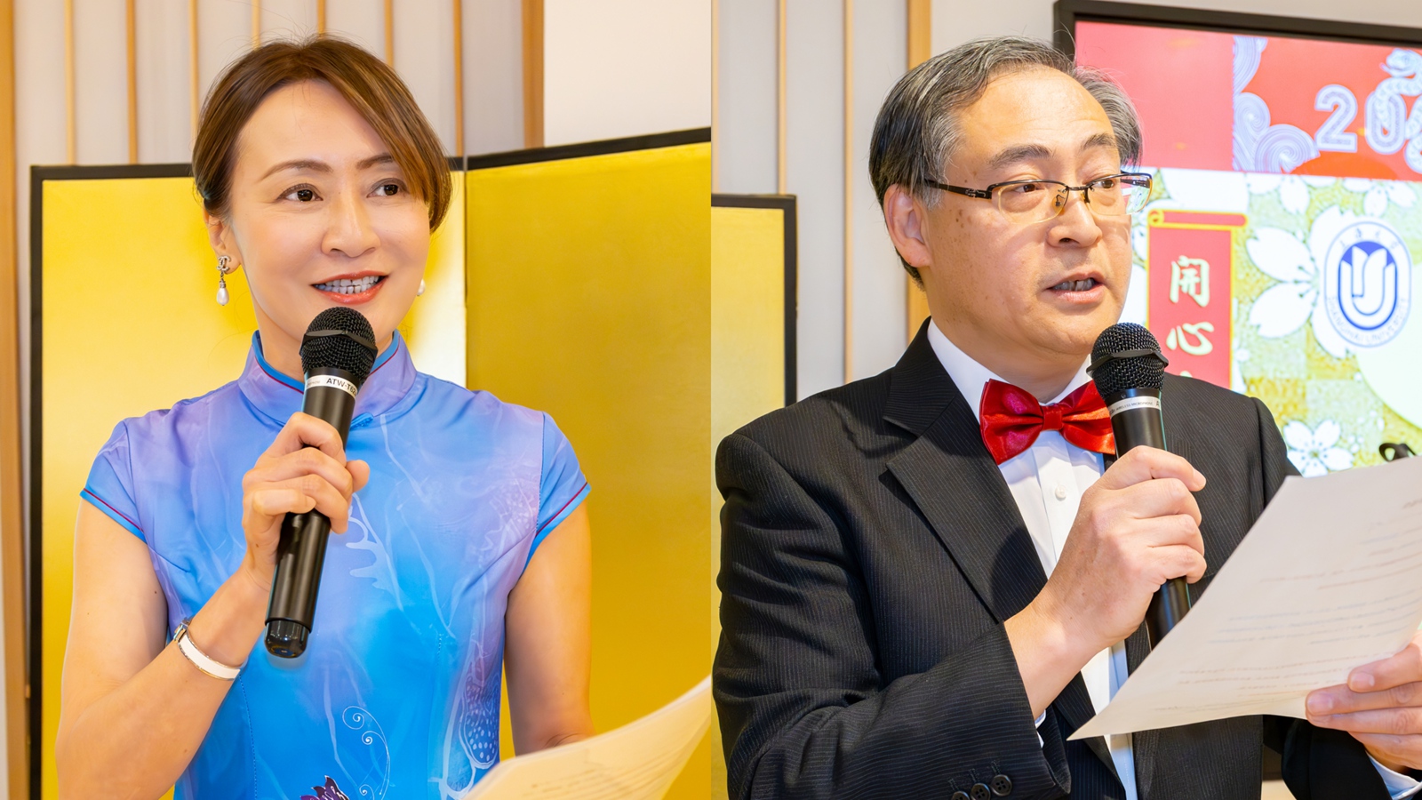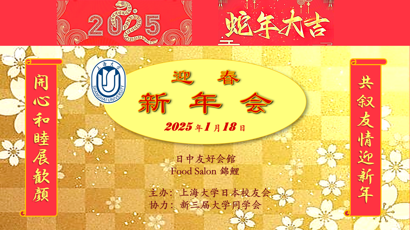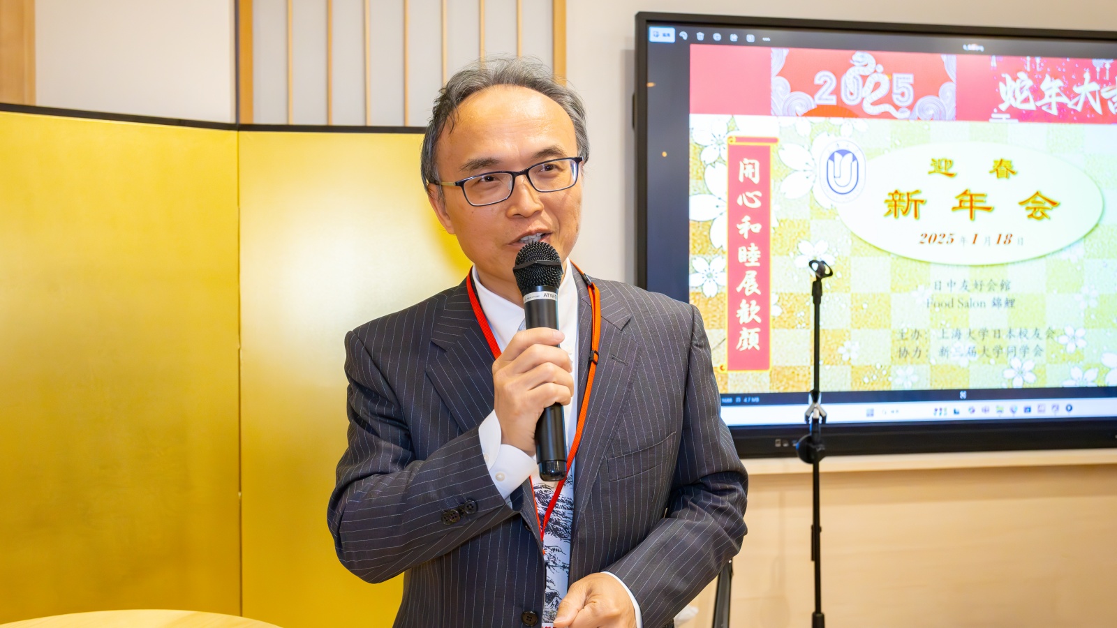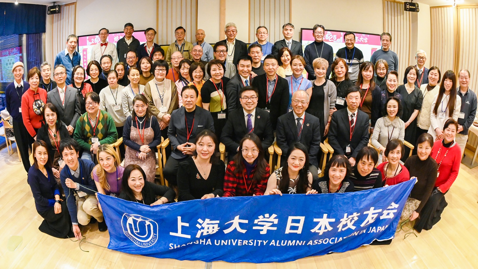 新年会由上海大学日本校友会主办、新三届大学同学会协力,上海大学日本校友会副会长兼秘书长龚鸣鸣、日本校友会理事范瑾主持。