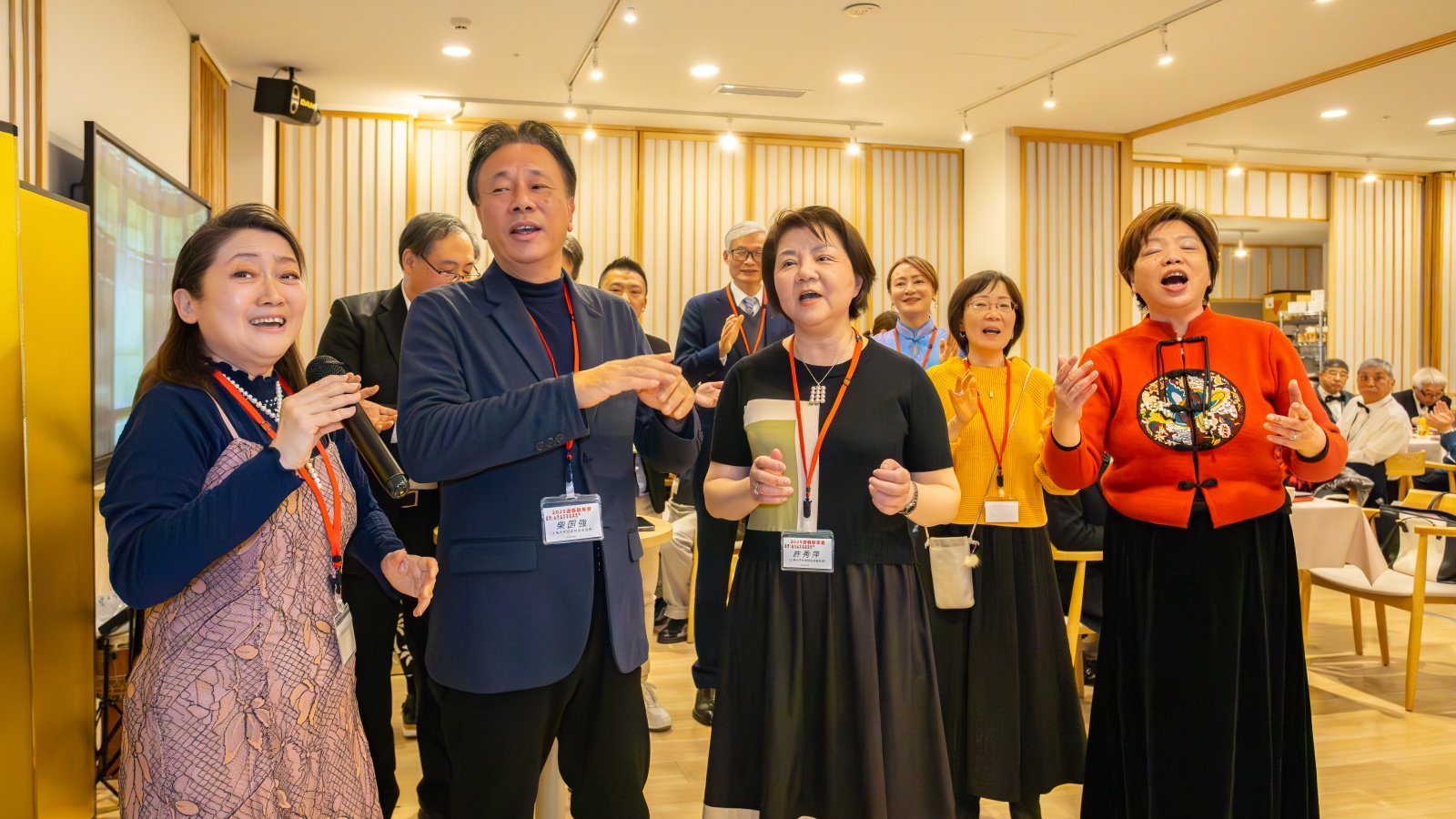 在校友会财务总监兼合唱团艺术总监汪启忻的带领下,新一届理事登台齐唱《上海大学校歌》,用歌声抒发对母校的热爱。新一届理事会将承前启后,继续践行校友会的核心价值,深化中日文化、科技与教育领域的交流合作,进一步提升校友会的影响力与凝聚力。