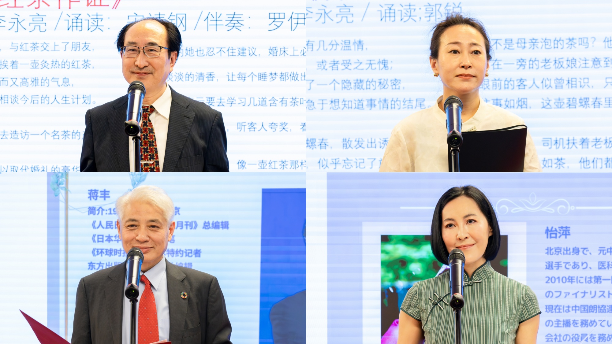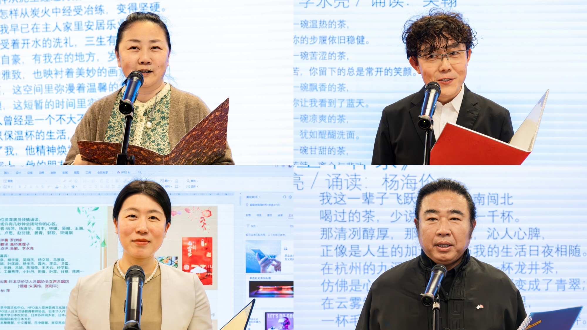 活动进入尾声,郭锐诵读了《碧螺春里的秘密》,《日本华侨报》总主笔蒋丰诵读了《金色的乌龙茶》,怡萍诵读了《一碗奶奶想喝的茶》,声情并茂的表演,再次将朗诵会推向高潮。感动的掌声,响彻全场,激动的泪水,溢出眼角。