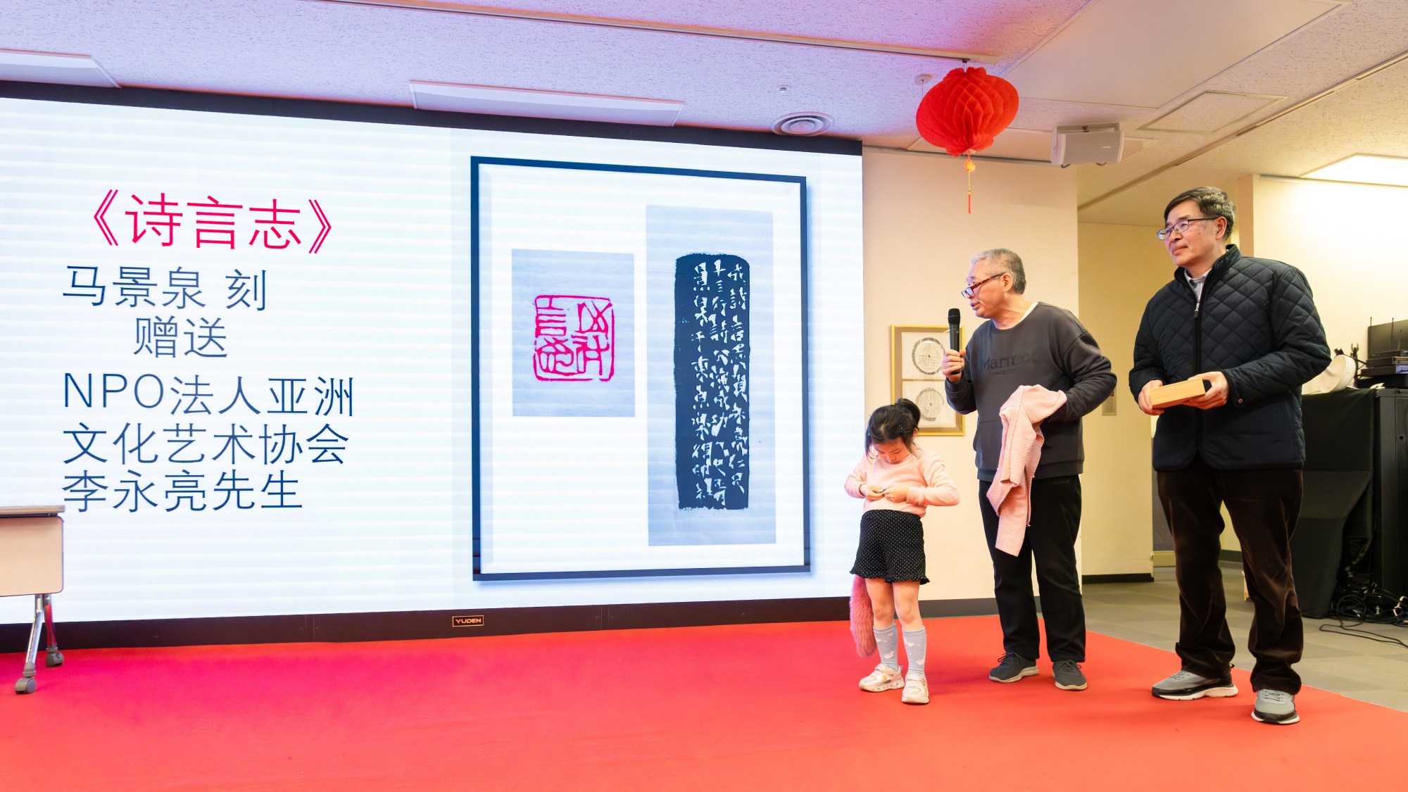 亚洲文化艺术协会十四行诗朗诵团队代表宋靖钢介绍了团队开展工作的情况。十四行诗朗诵活动已持续两年多的时间,共得到100多万次观众及听众的关注。2024年7月,由李永亮创作、笑笑朗诵的十四行诗《父亲的眼泪》在中央电视台举办的“万人悦读大赛”中荣膺金奖。借此机会,向东京中国文化中心及各界友人的支持和关心致谢,团队全体同仁将再接再厉、再夺硕果。
