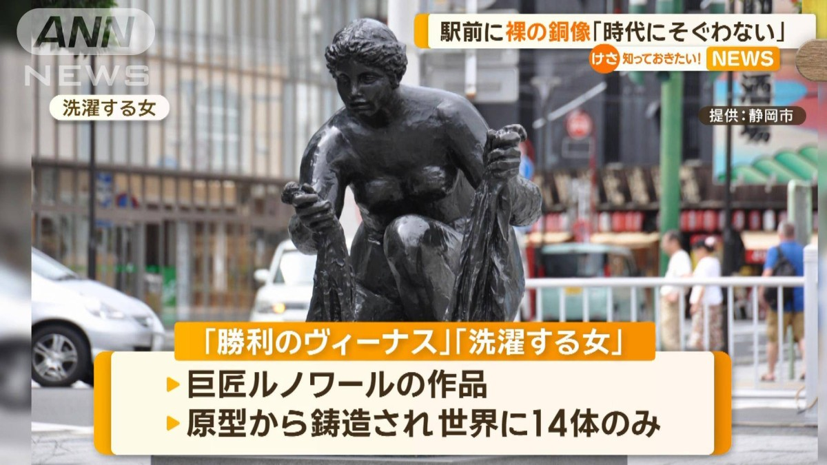 究竟是“无伤大雅”还是“有伤风化”,日本东京新闻在今年的2月3日发表的一篇报道,引发了讨论。2024年年底,静冈市开展了一场“肃清运动”,将街头巷尾随处可见的裸体雕像一律拆除。这些雕像以坚硬的材料展示了胴体的柔美,并且作为战后日本的“和平”象征见证了街道的复兴。比如,JR静冈站前那座由著名印象派画家雷诺阿创作的两尊裸体雕像“洗衣妇”和“维纳斯胜利女神”。这是静冈市在1994年斥资约1.3亿日元购买并安装的。此外站前广场周围还有7座裸体雕像,大部分创作于20世纪80年代。