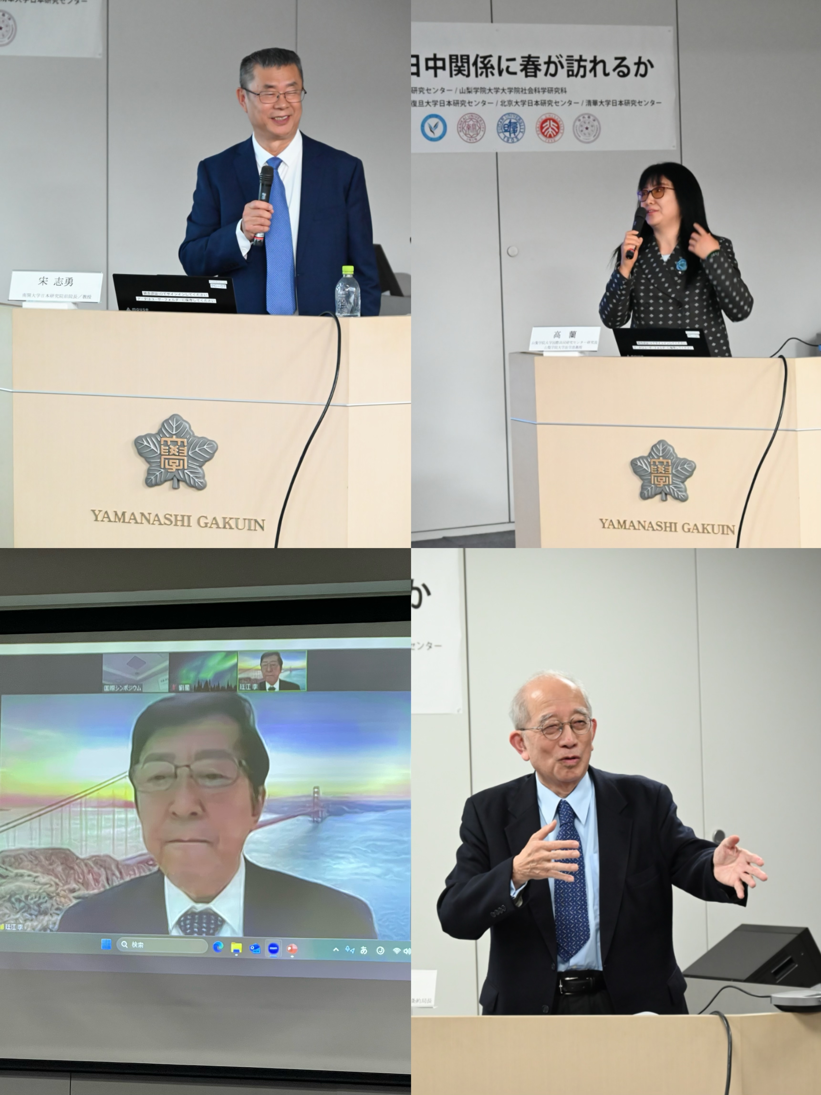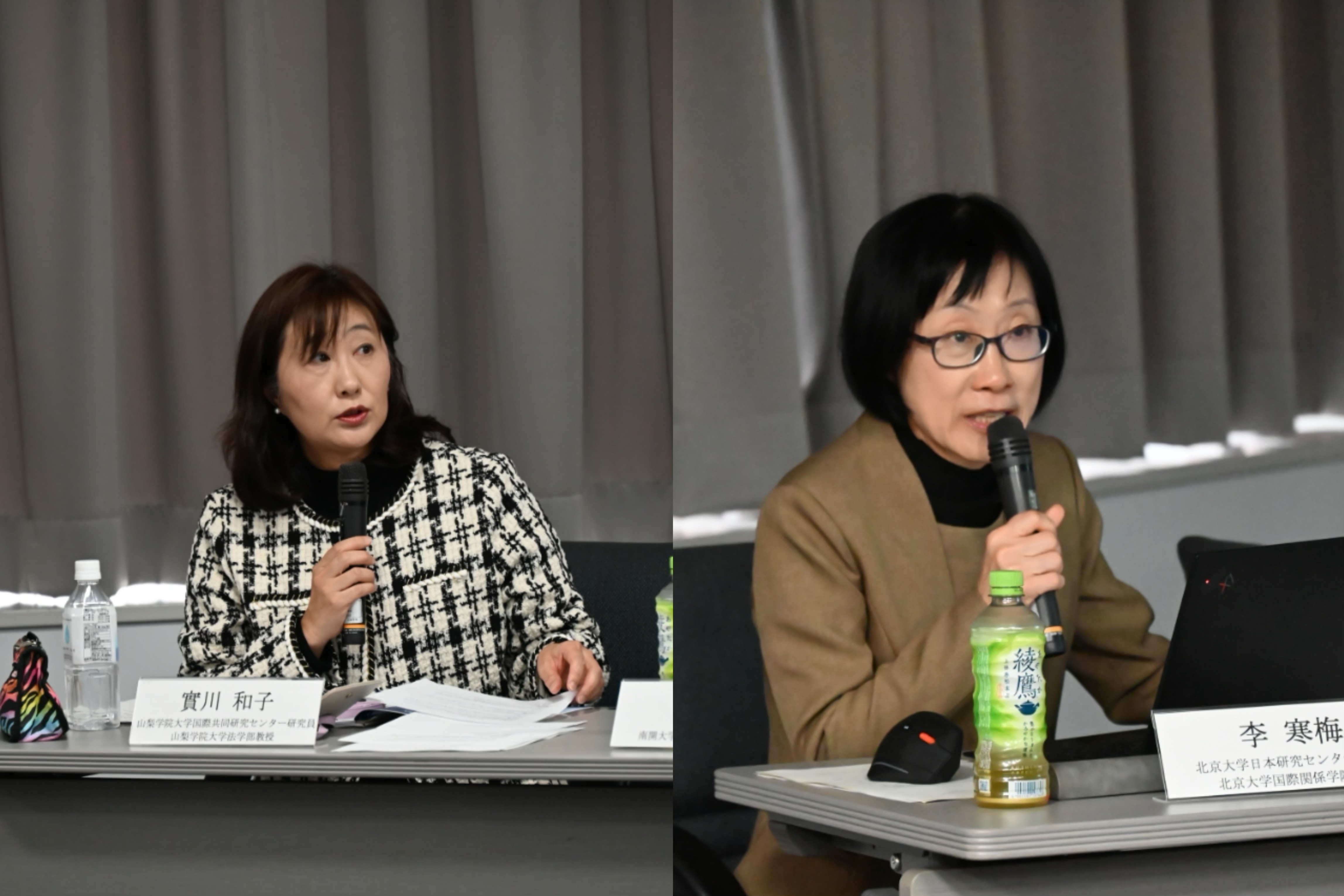 野村千佳子(山梨学院大学国际共同研究中研究员、经营学部教授)、实川和子(山梨学院大学国际共同研究中研究员/法学部教授)、李寒梅(北京大学日本研究中心前所長、北京大学国际关系学院教授)分别担任主持。