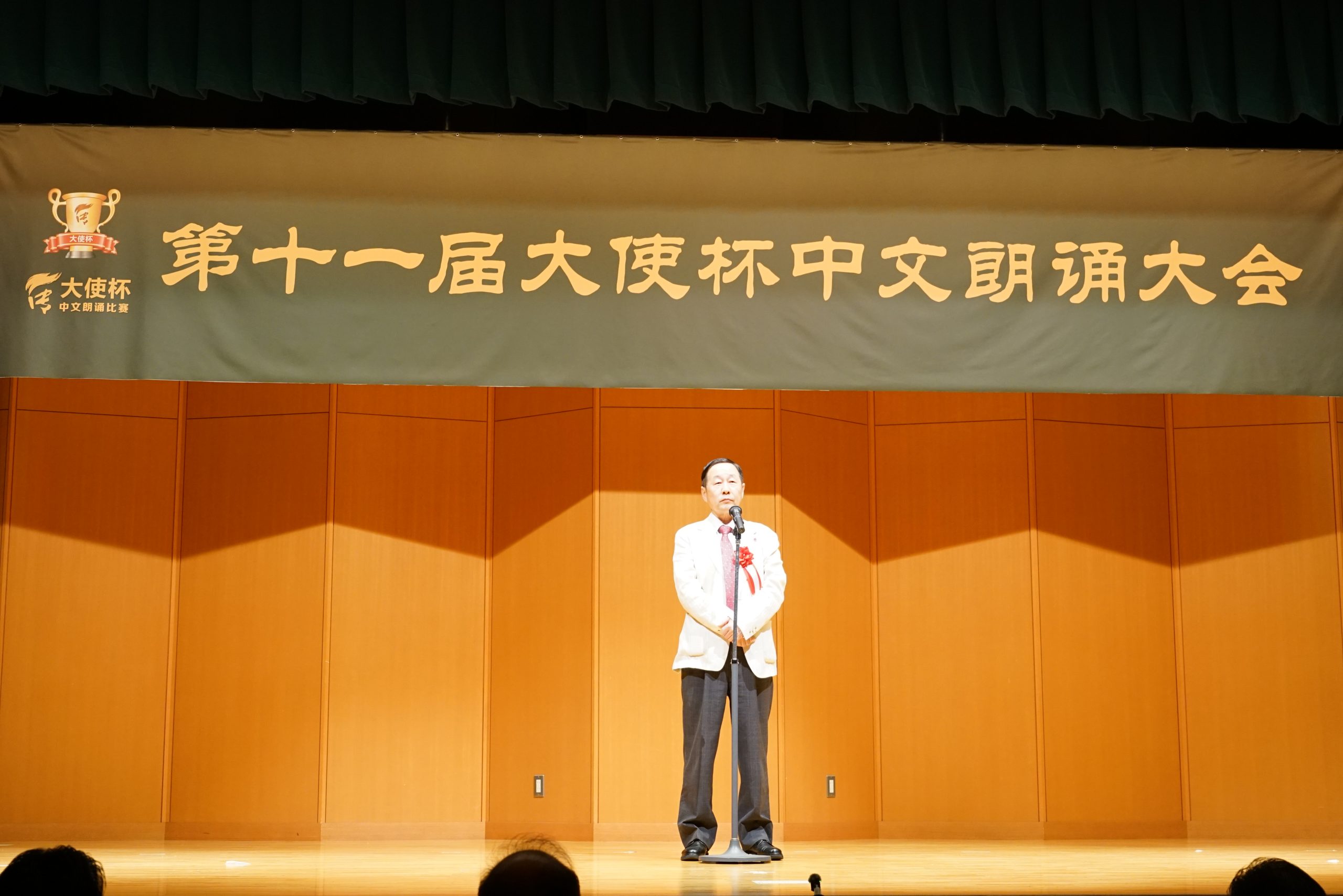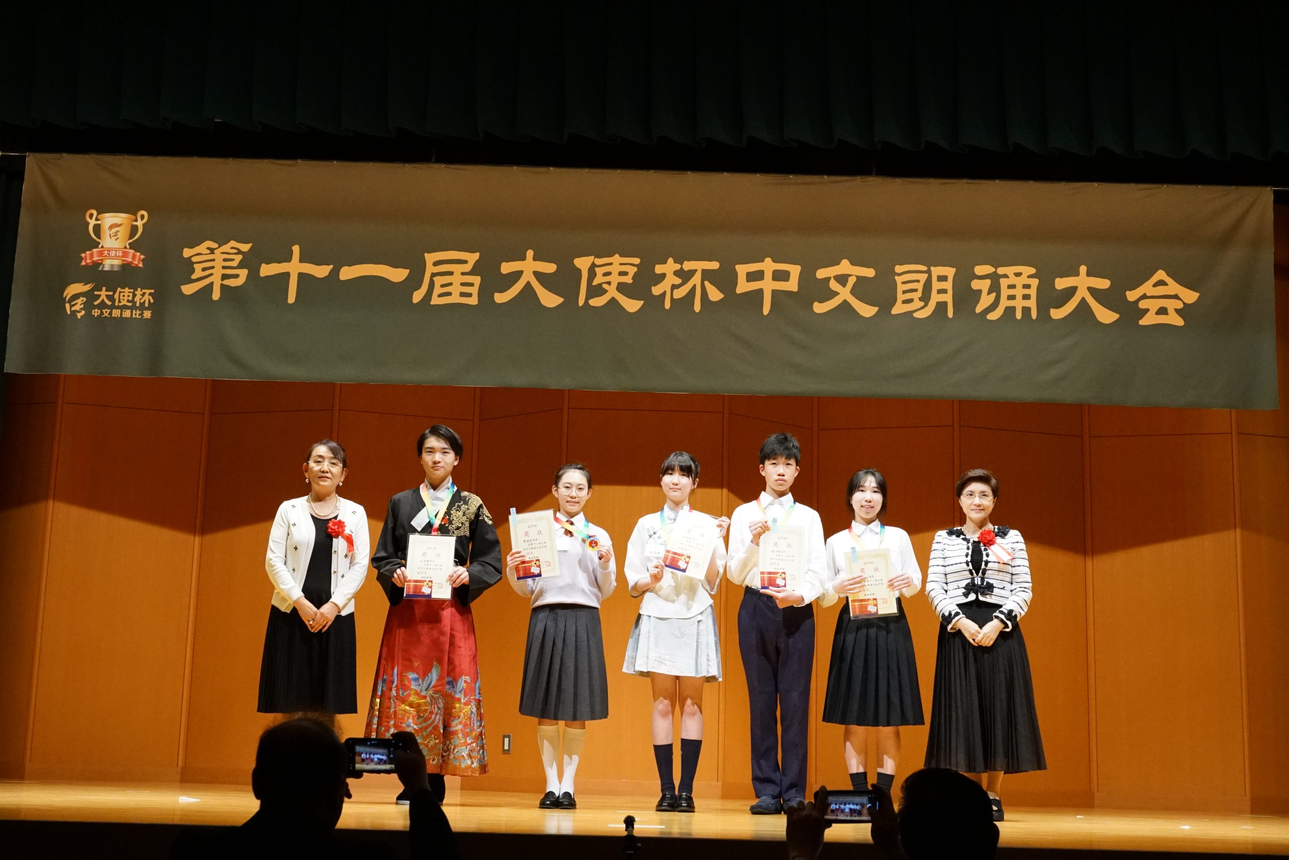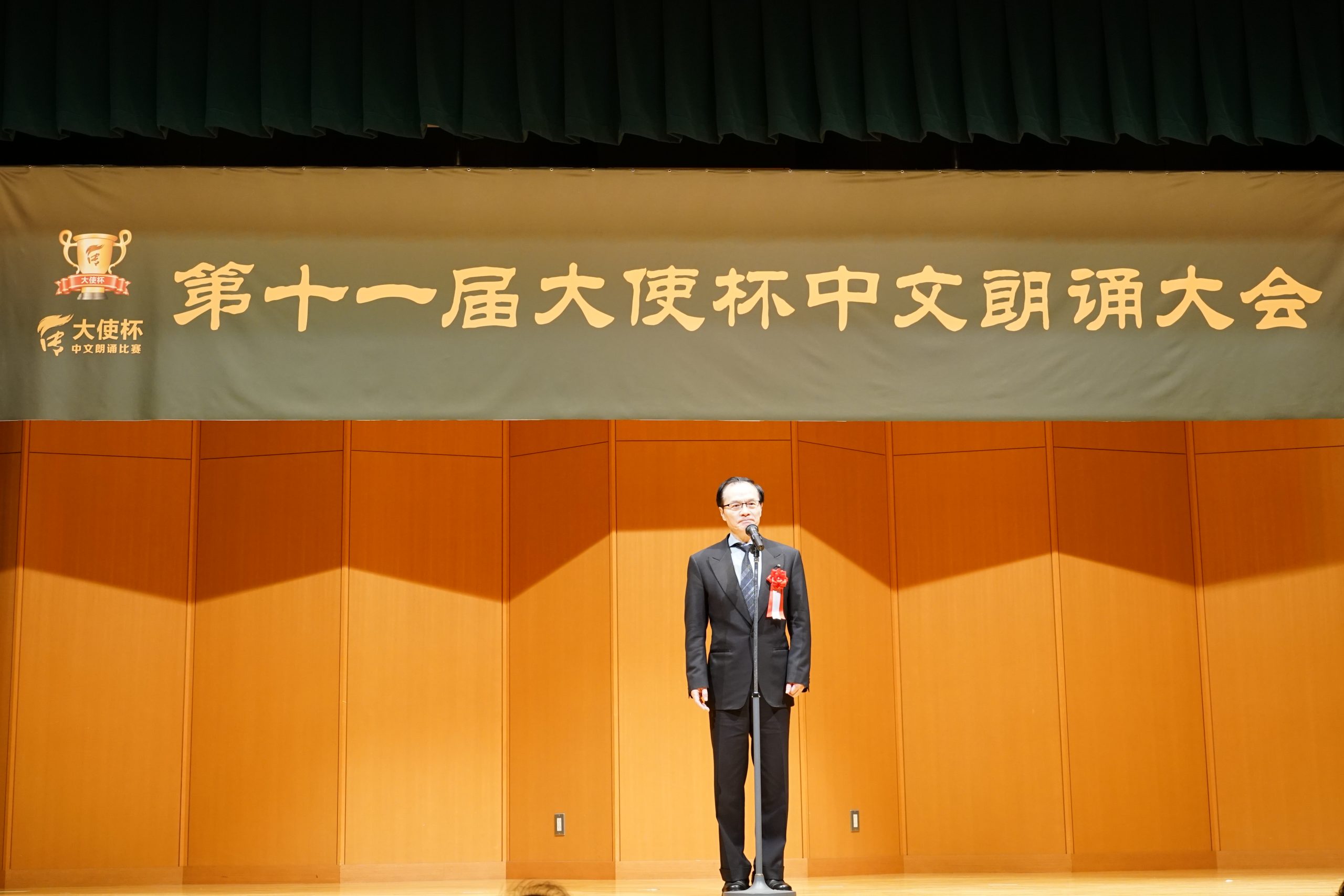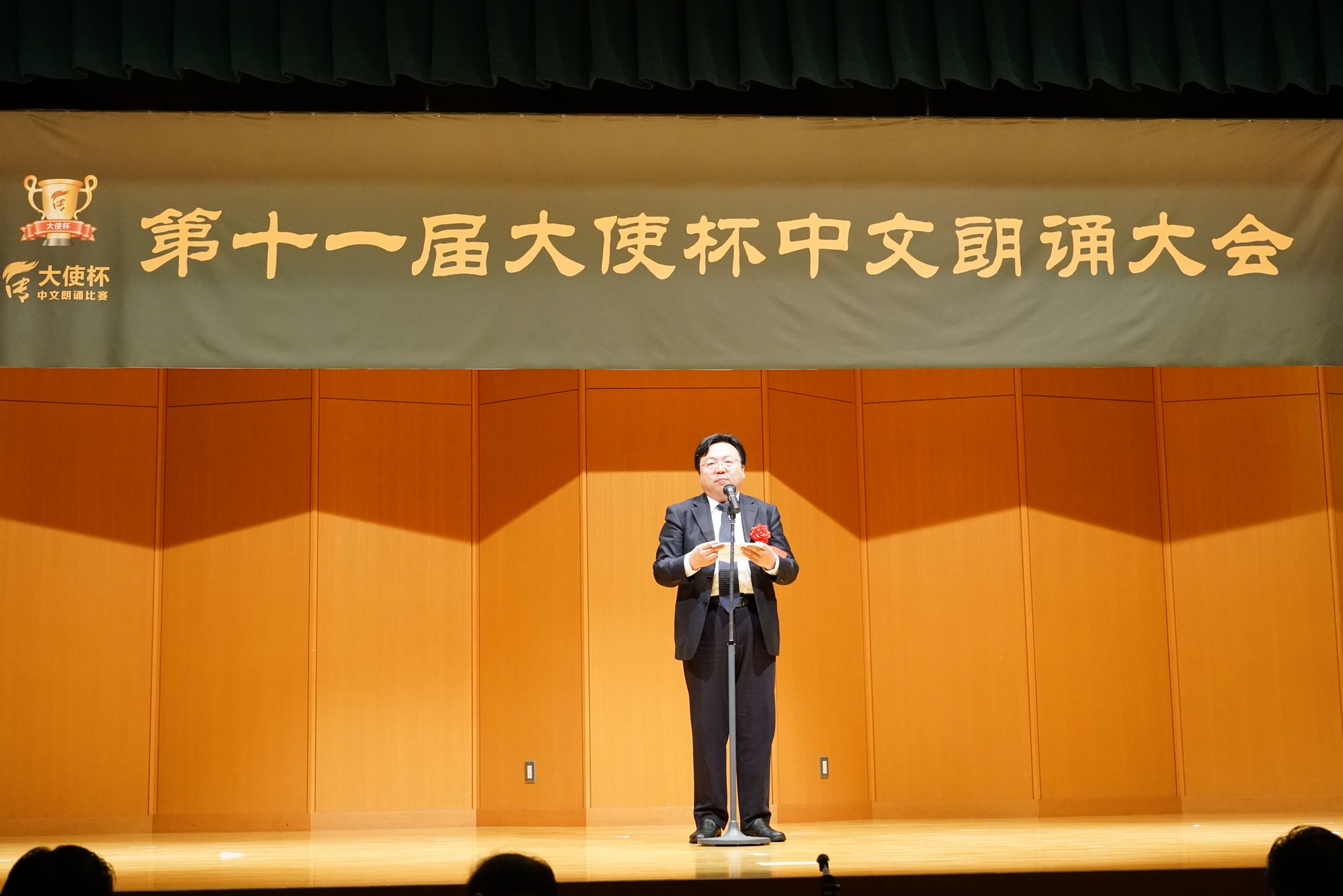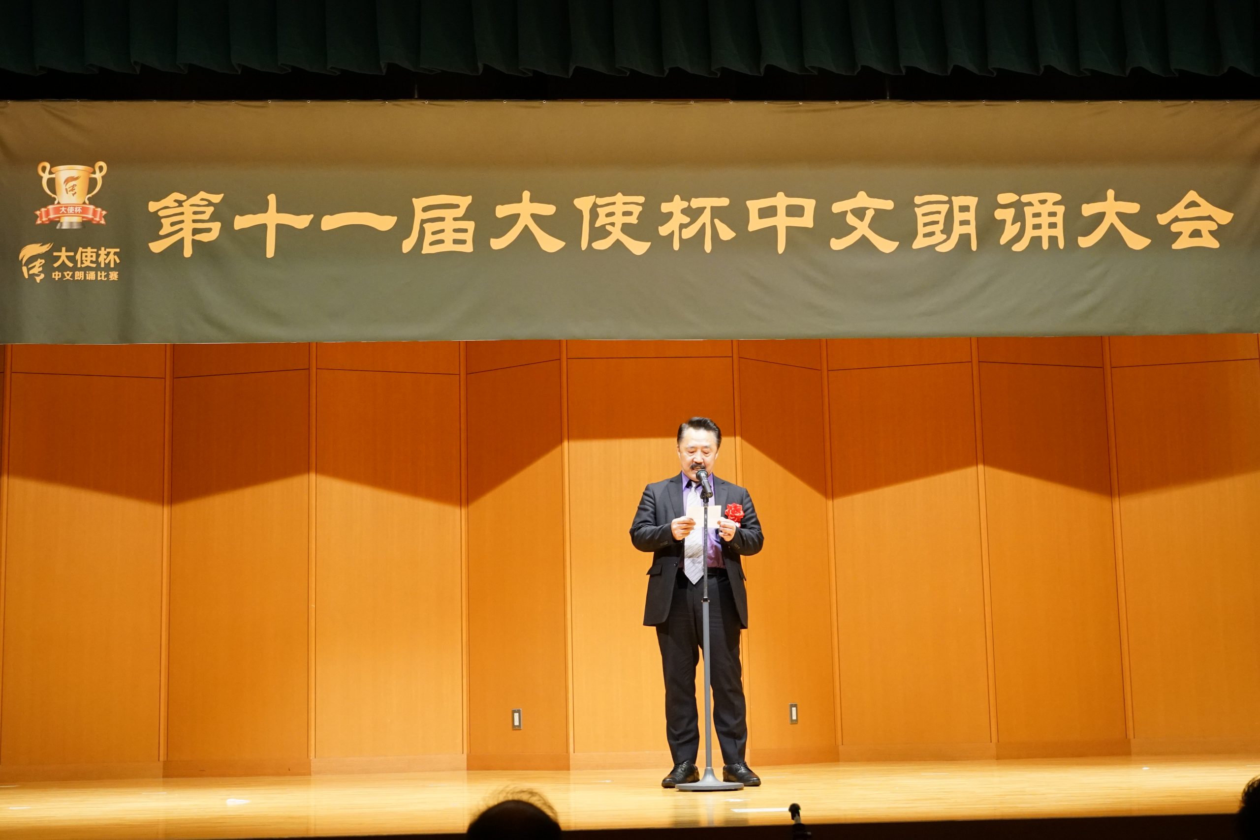 第十一届“大使杯”朗诵大赛共分上午场、下午场及闭幕仪式三大部分。杏林大学教授刘迪、东京话剧艺术协会会长凌庆成、国家一级播音员贾卓炎、武藏野美术大学教授廖赤阳、原中央电视台主播孙靖涵、横滨山手中华学校张岩松校长、《中文导报》社长杨文凯、日本大学教授吴川、原北京人艺著名演员尚丽娟、明星大学教授赵海城等分别担任上下午场的评委。