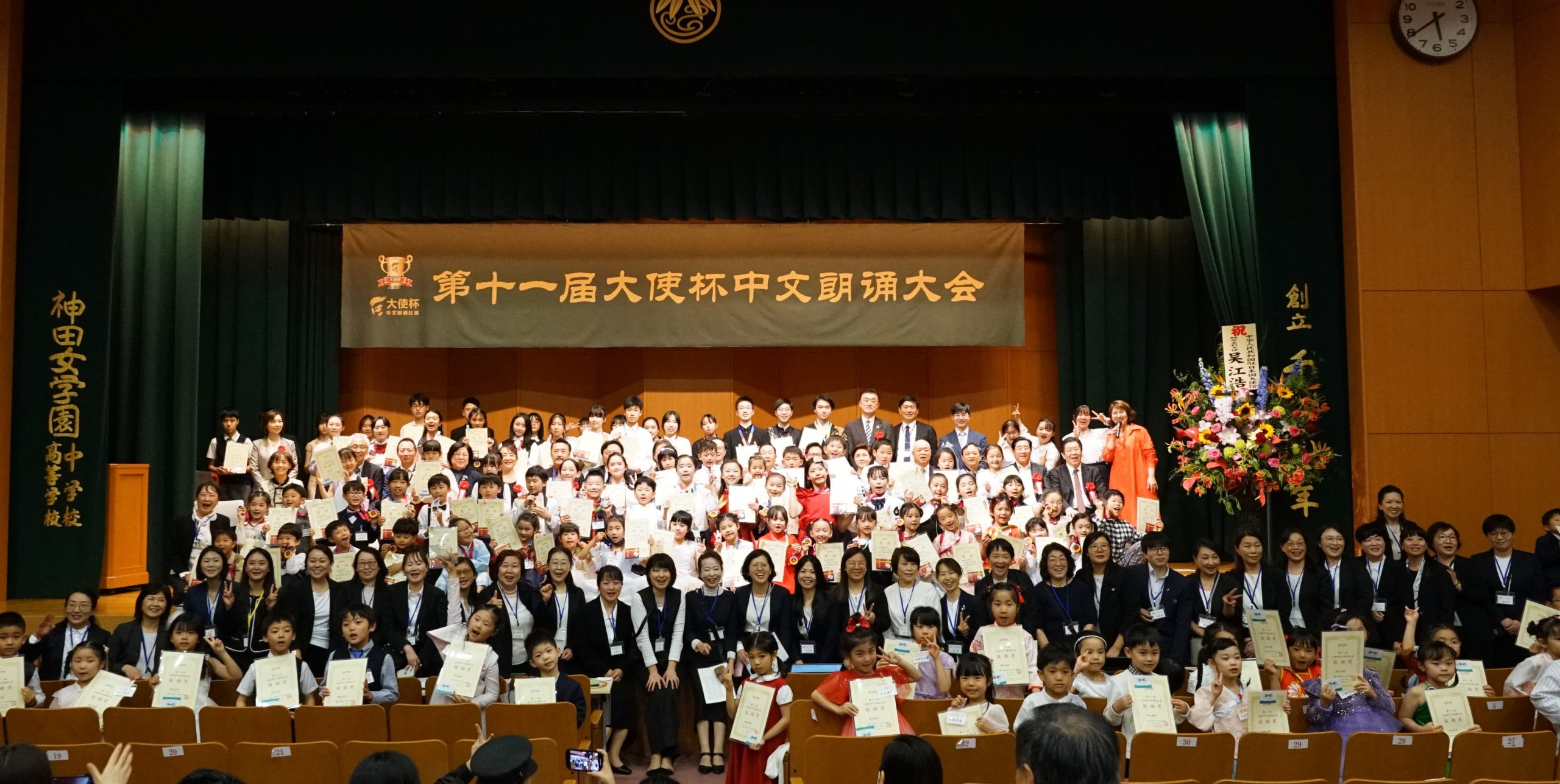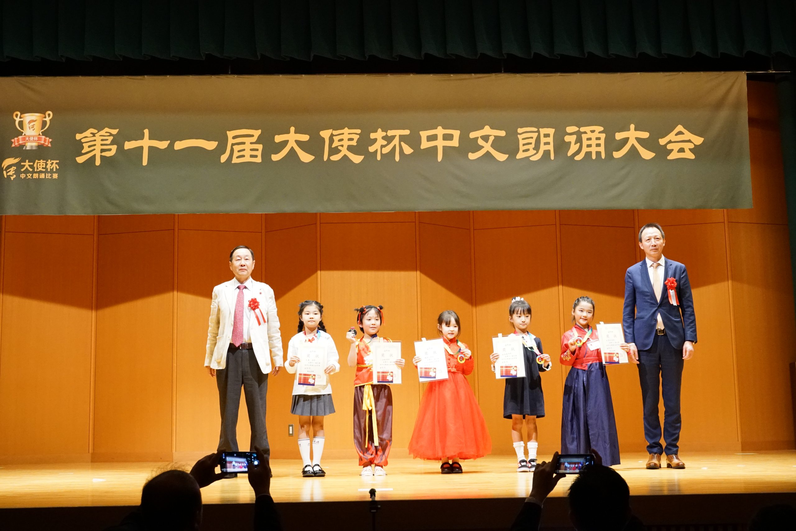51位选手分别荣获相应组别的金、银、铜奖。中国驻日本大使馆王宝锋领事、于舟,全华联代表理事高原龙一,东京华侨总会会长钱江丽子,日本华文教育基金会会长林立,全华联副理事长庄旭等嘉宾为获奖选手颁奖。