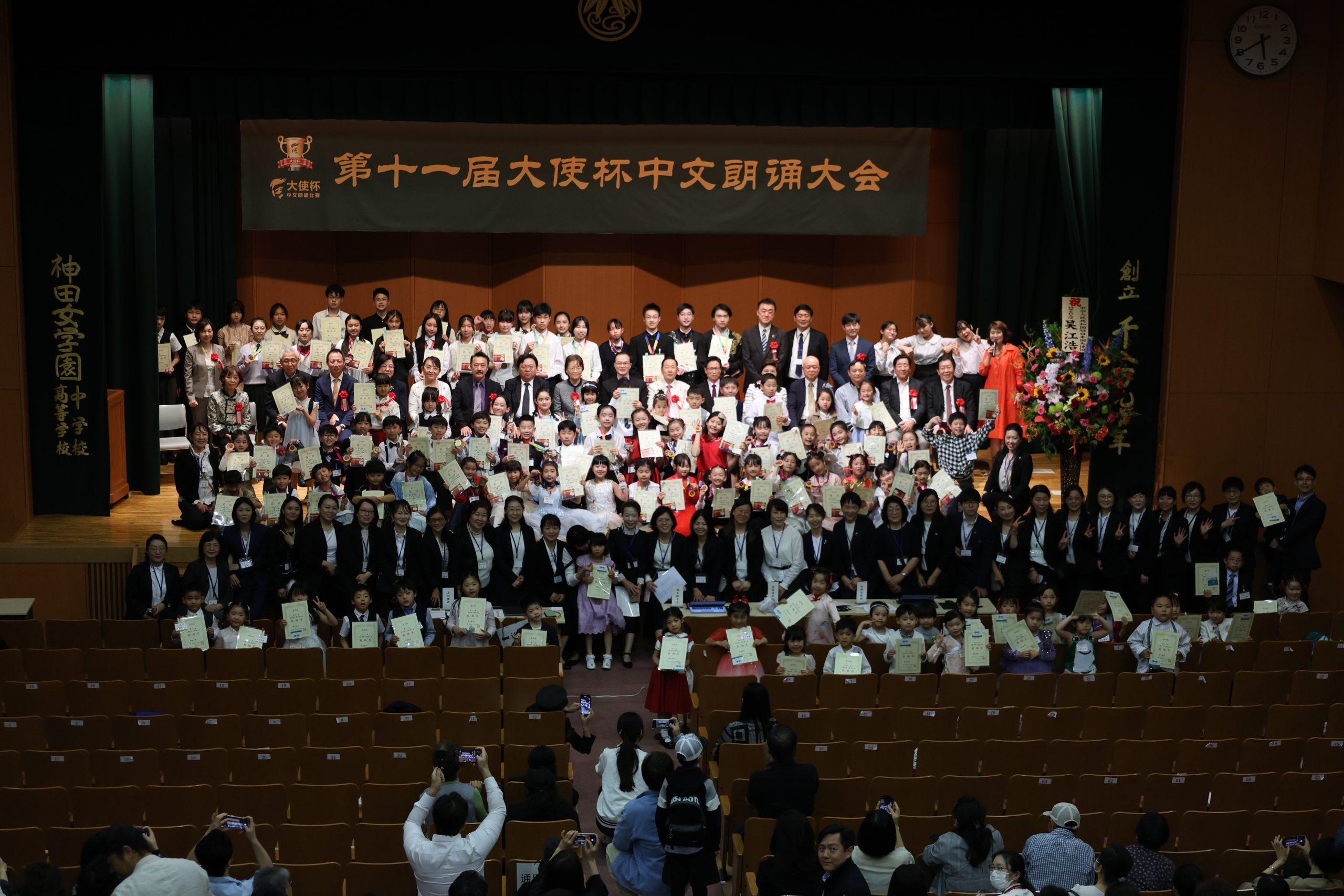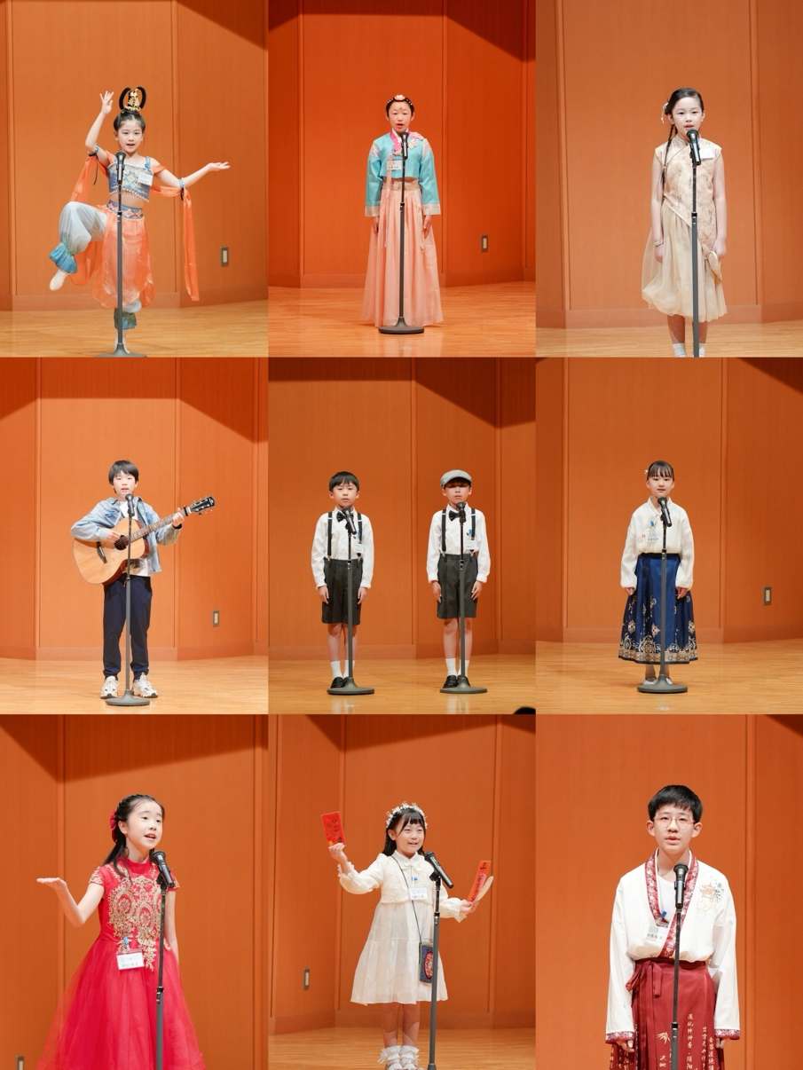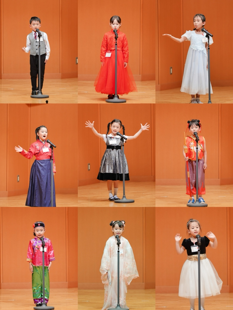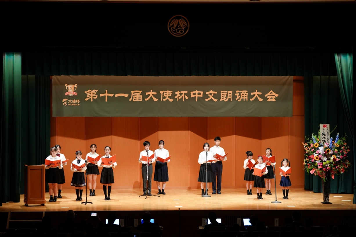 闭幕仪式上,上届获奖选手代表重回“大使杯”的舞台,用深情饱满的童声朗诵旅日诗人弥生创作的长诗,参赛选手与家长热情呼应,传承中华文脉、展现时代新貌的自豪之情盈满会场。