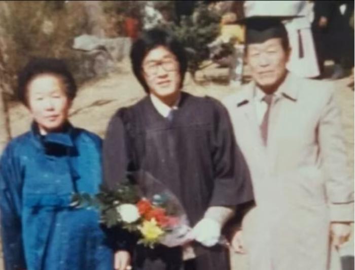 李在明父母参加李在明大学毕业典礼。图片来源:李在明个人社交媒体