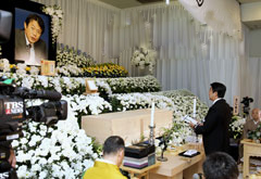 中川生前的盟友、前首相安倍晋三含泪宣读了悼词:“战斗的政治家中川昭一是我的榜样。你的行动一心为国。”