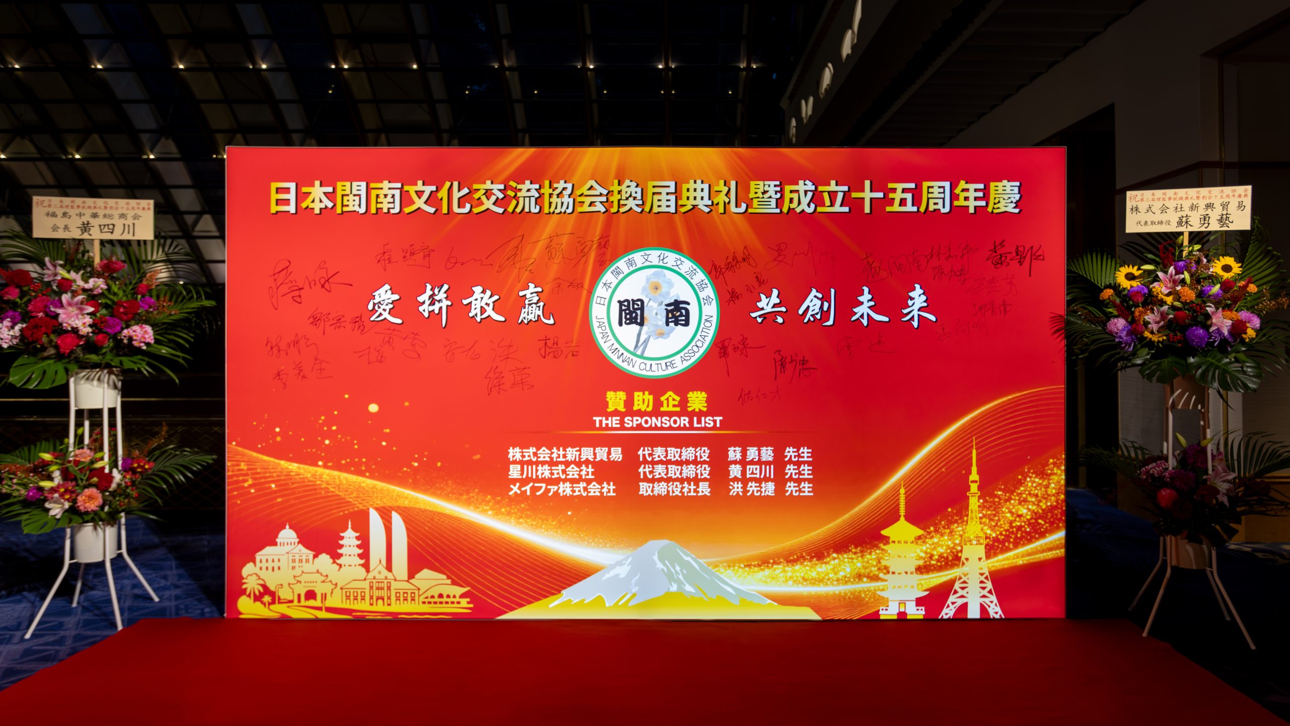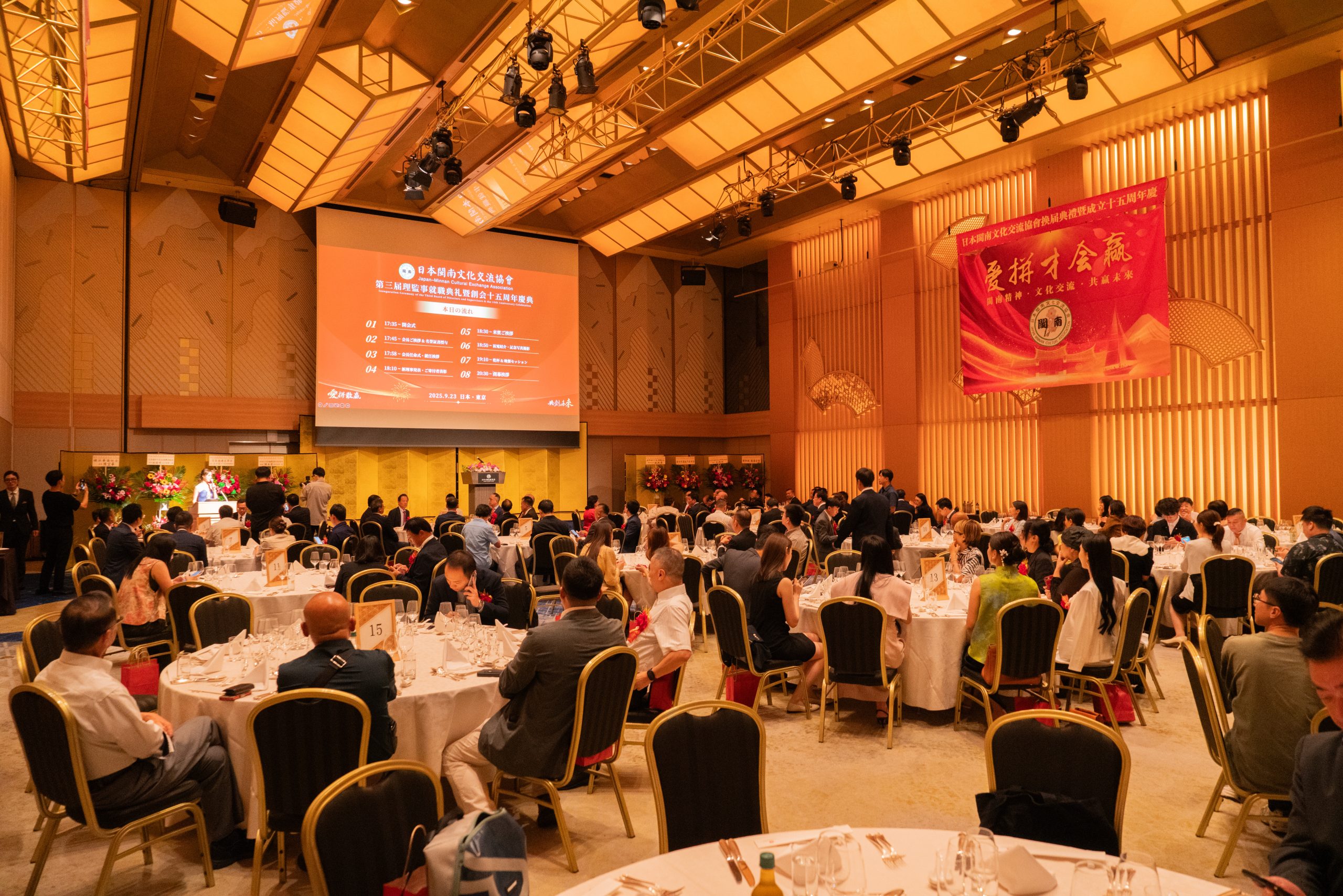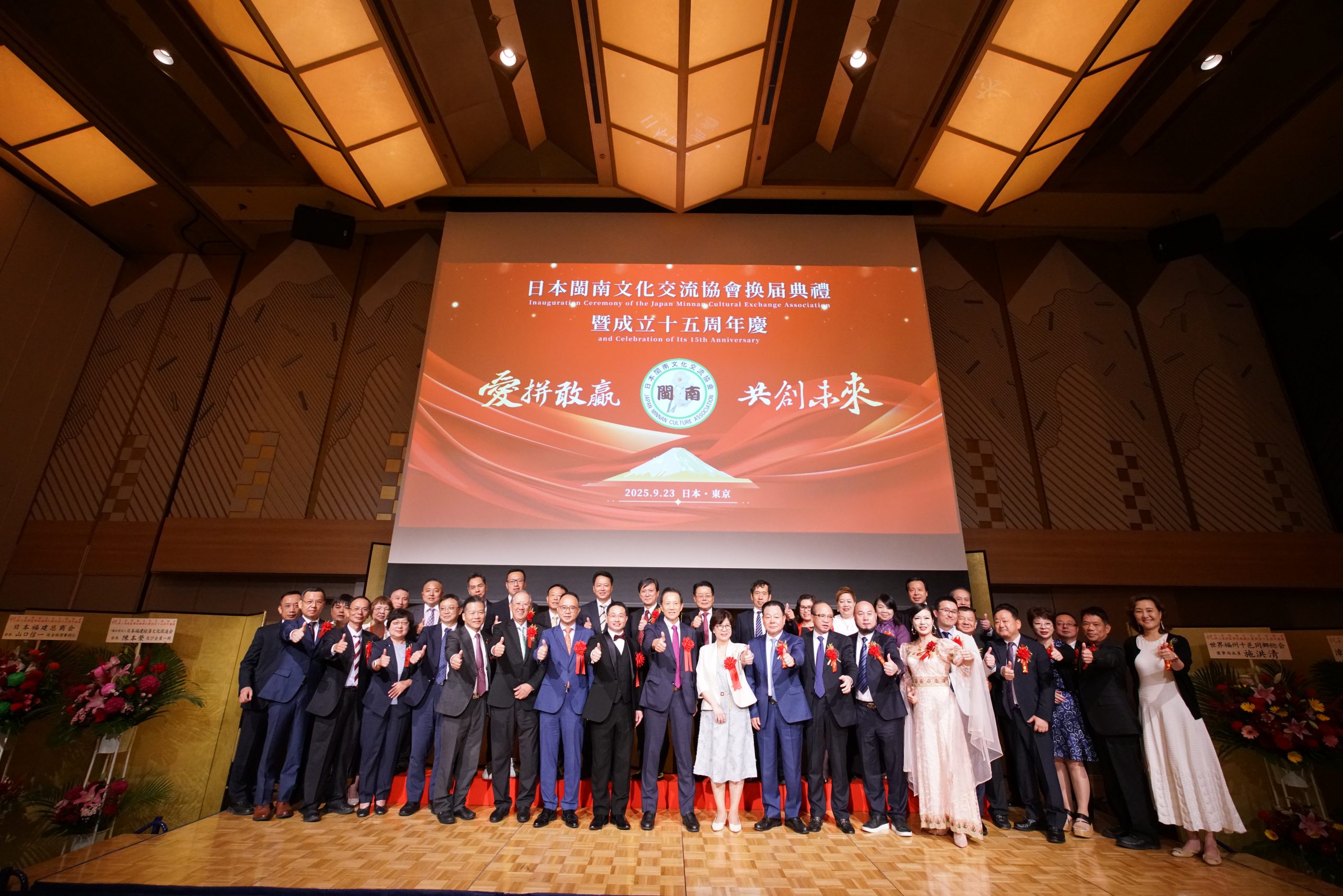 爱拼敢赢,共创未来。9月23日,在东京雅叙园,日本闽南文化交流协会换届就职典礼暨创会十五周年纪念活动隆重举行。