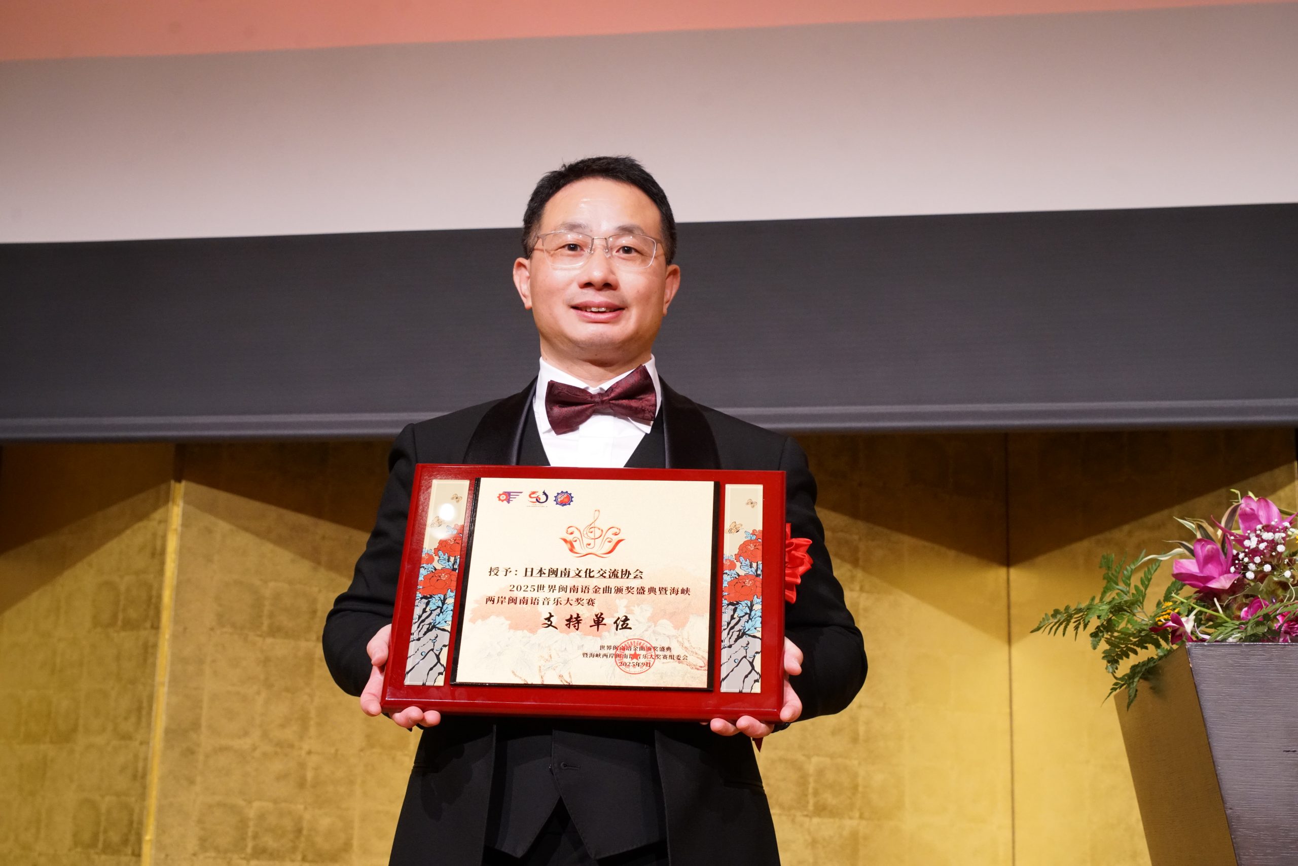 世界闽南语金曲盛典组委会授予日本闽南文化交流协会优秀支持单位荣誉牌匾,表彰其长期以来在推动闽南文化海外传播中所发挥的突出作用。协会也正式聘请中国文化大使、福建省闽南文化交流发展基金会理事长陈飞担任协会顾问,期待携手深化中日人文交流。