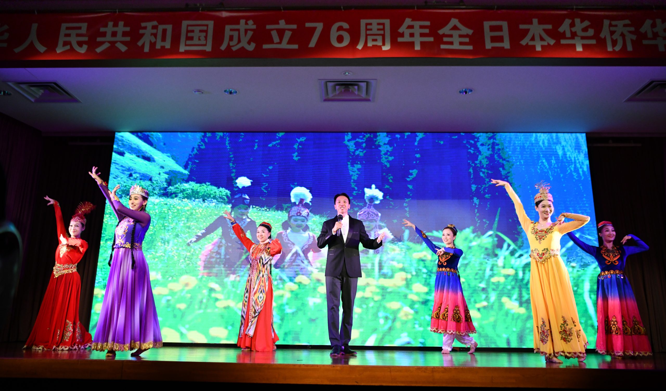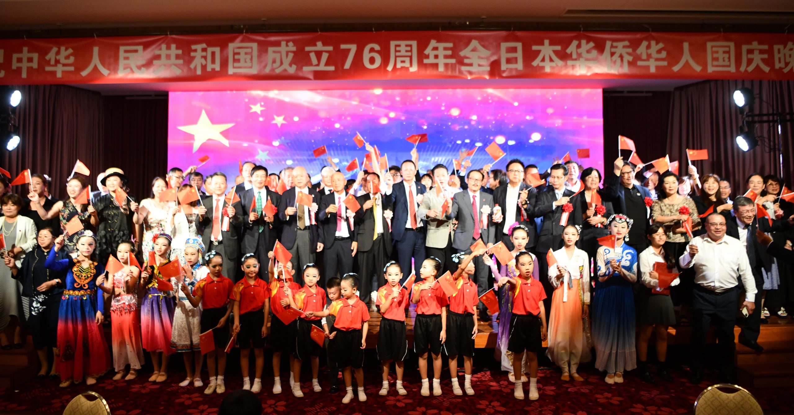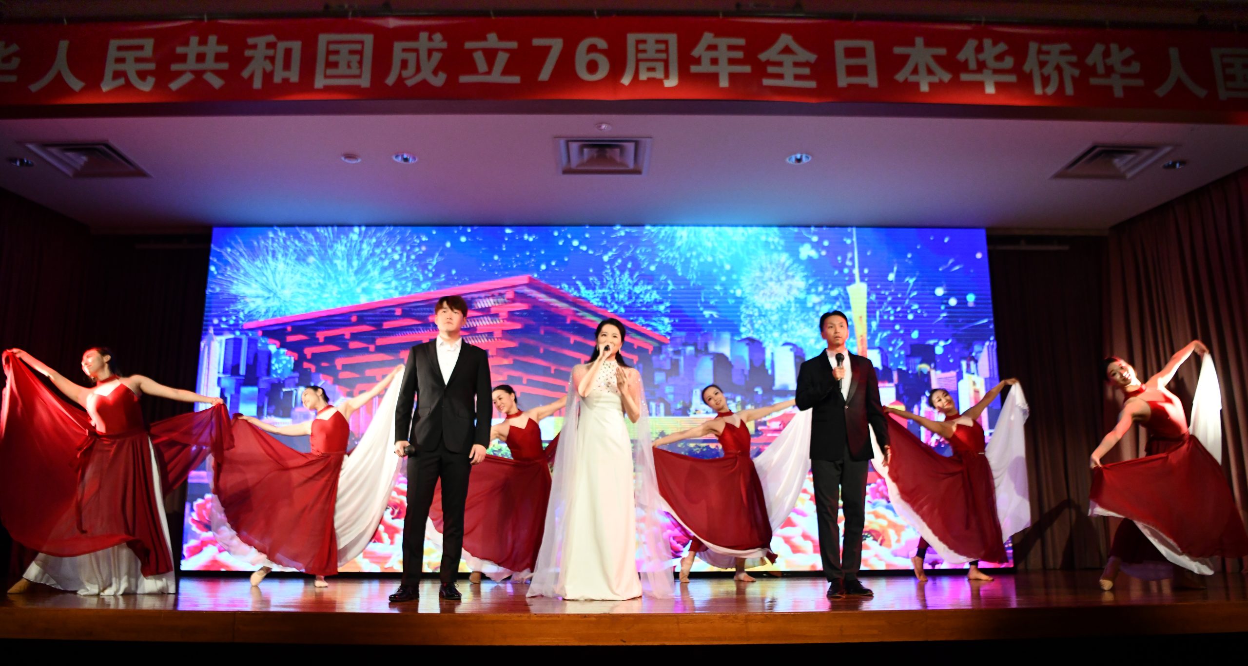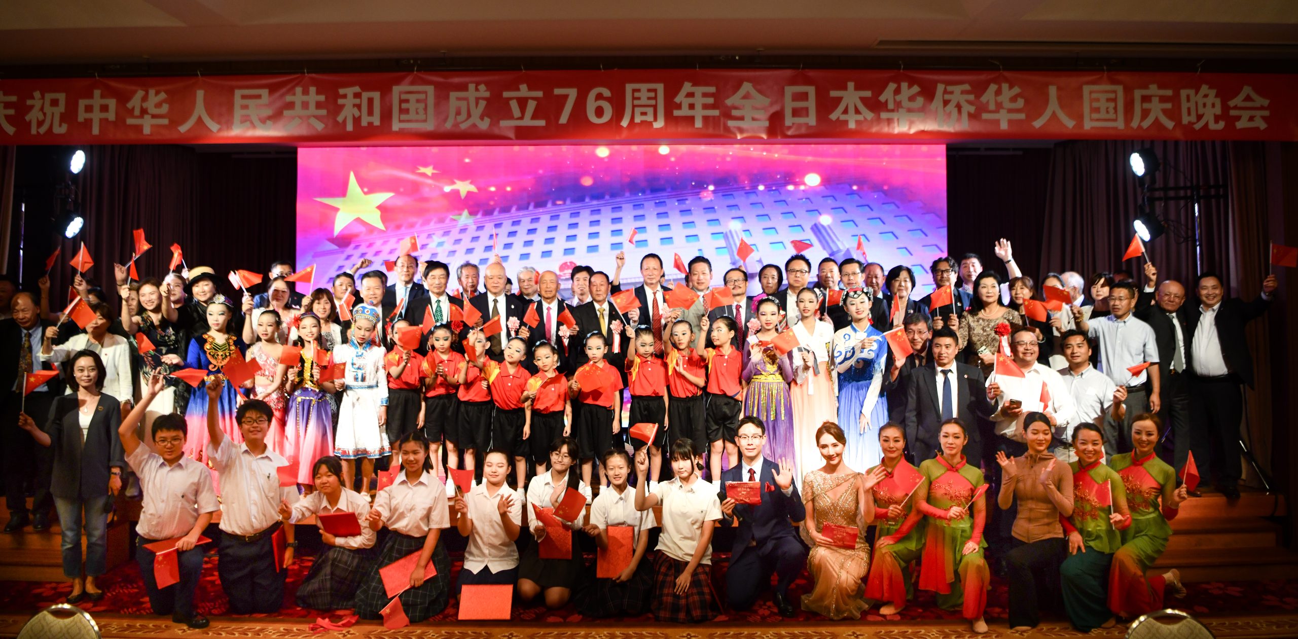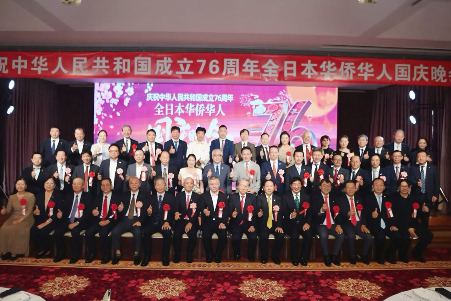当晚,中国驻日本大使馆公使赵宝钢、日本前首相鸠山由纪夫、日中友好协会会长宇都宫德一郎、日中友好会馆中方代表黄星原、理事长小川正史、日中协会理事长濑野清水、日本中华总商会评议员会会长严浩、东京华侨总会会长钱江丽子、横滨华侨总会会长陈宜华等政要、侨界人士及友好团体代表莅临现场。主办方全华联理事长贺乃和、会长张书明、代表理事高原龙一、执行会长林立以及所属各会会长出席。连同演职人员在内,约300人共聚一堂,共同庆祝中华人民共和国成立76周年,祝愿伟大的祖国繁荣富强。