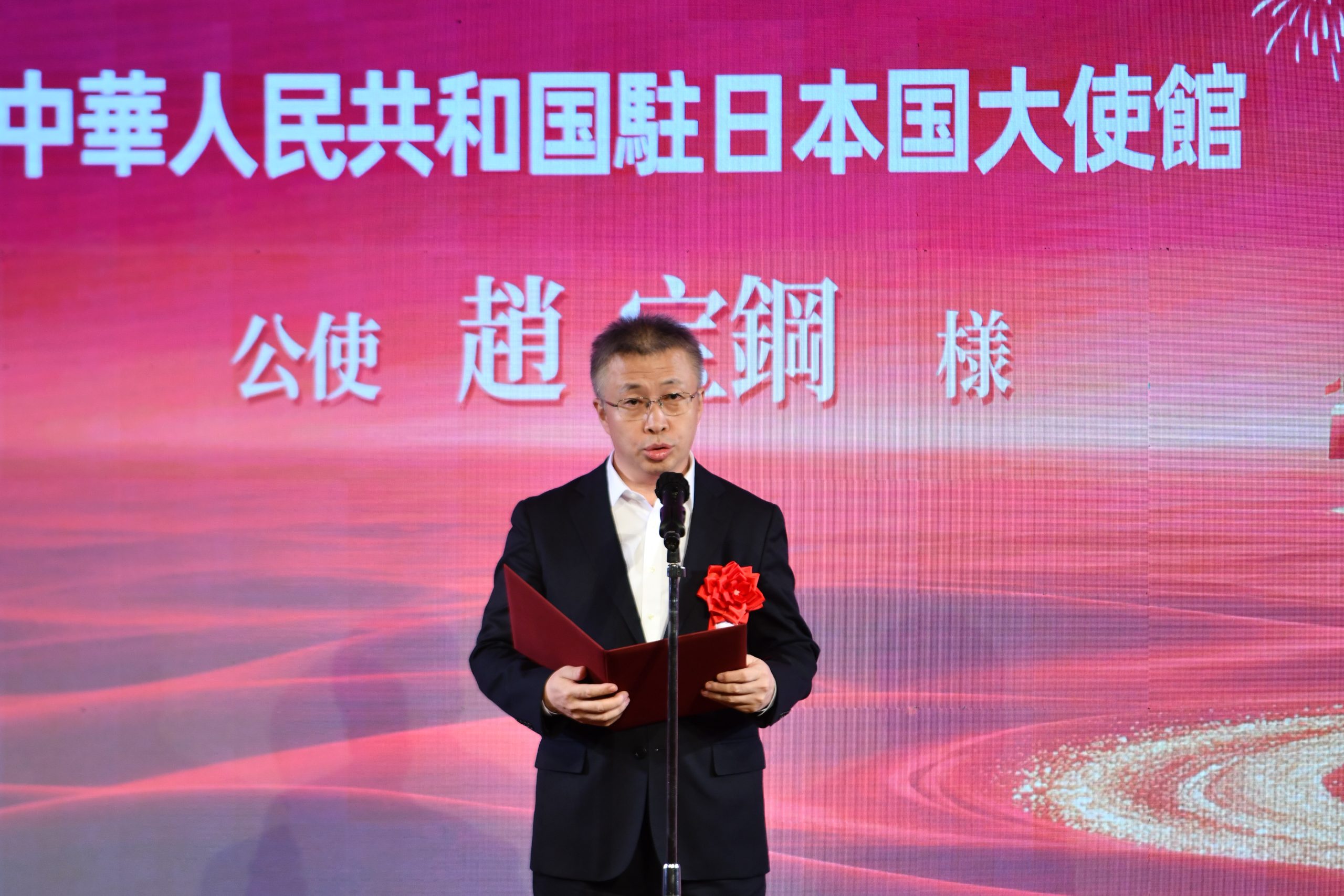 全华联代表理事高原龙一随后发表祝酒词,祝愿祖国繁荣昌盛、中日友谊长青。全场嘉宾起立举杯,氛围热烈。