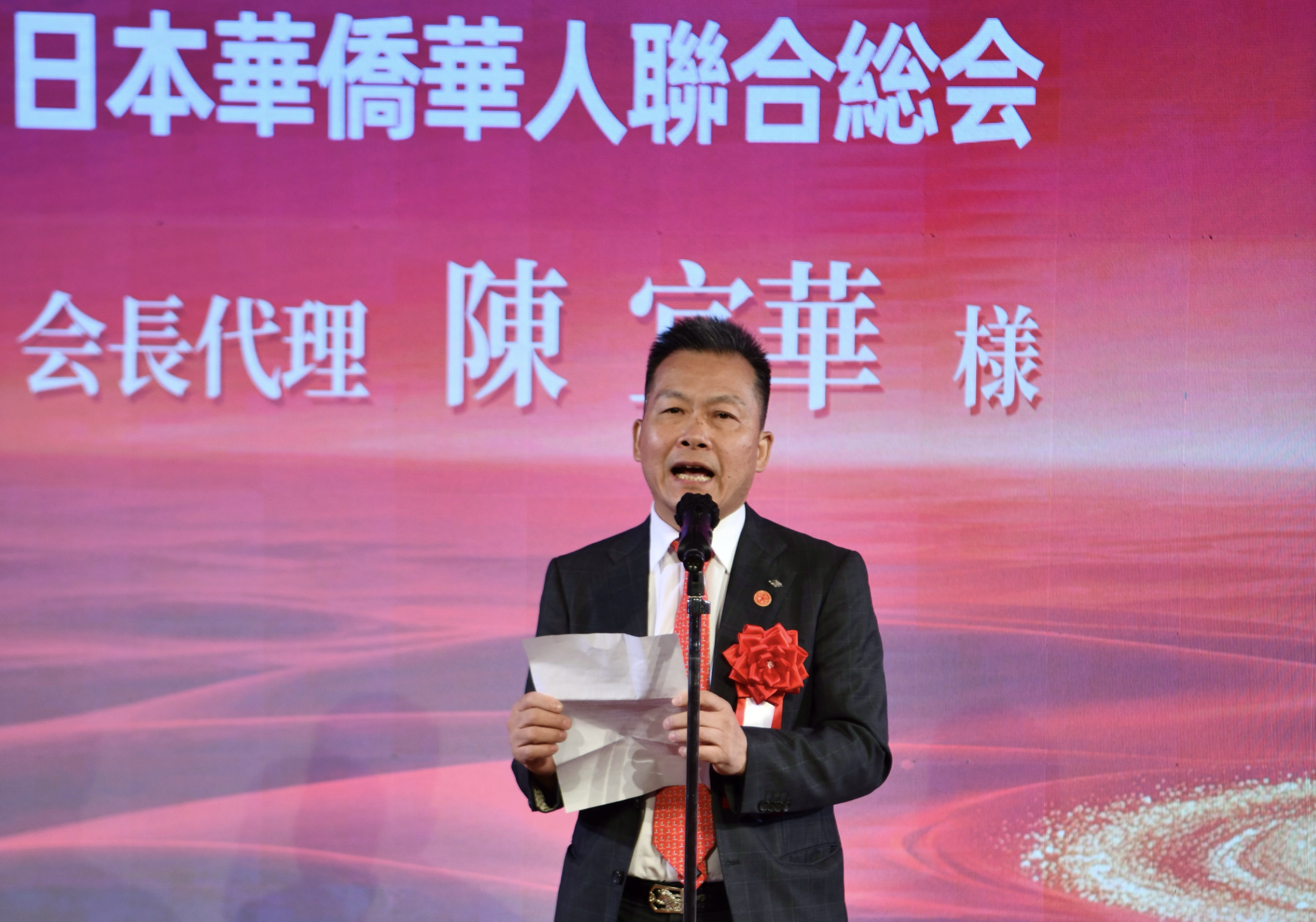 横滨华侨总会会长陈宜华在致辞中,表达对祖国的祝福与对中日民间交流的信心。