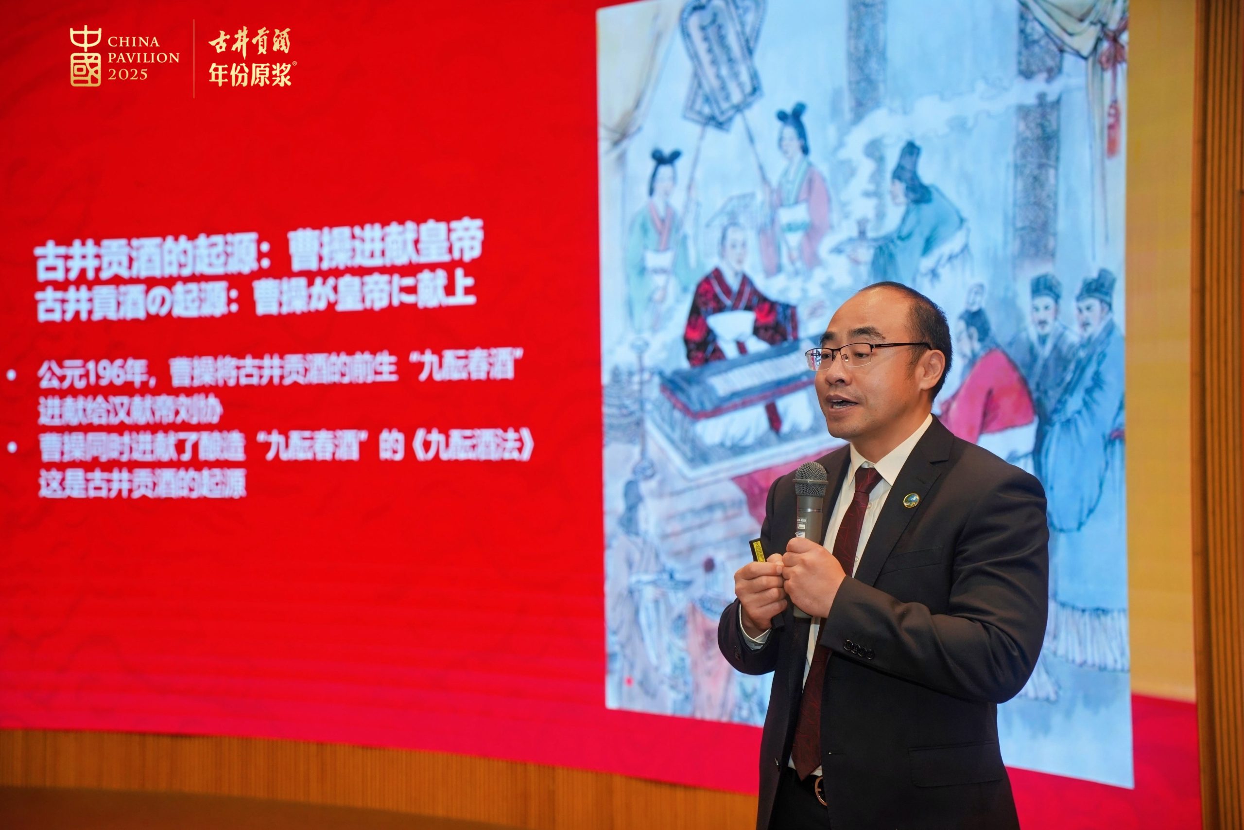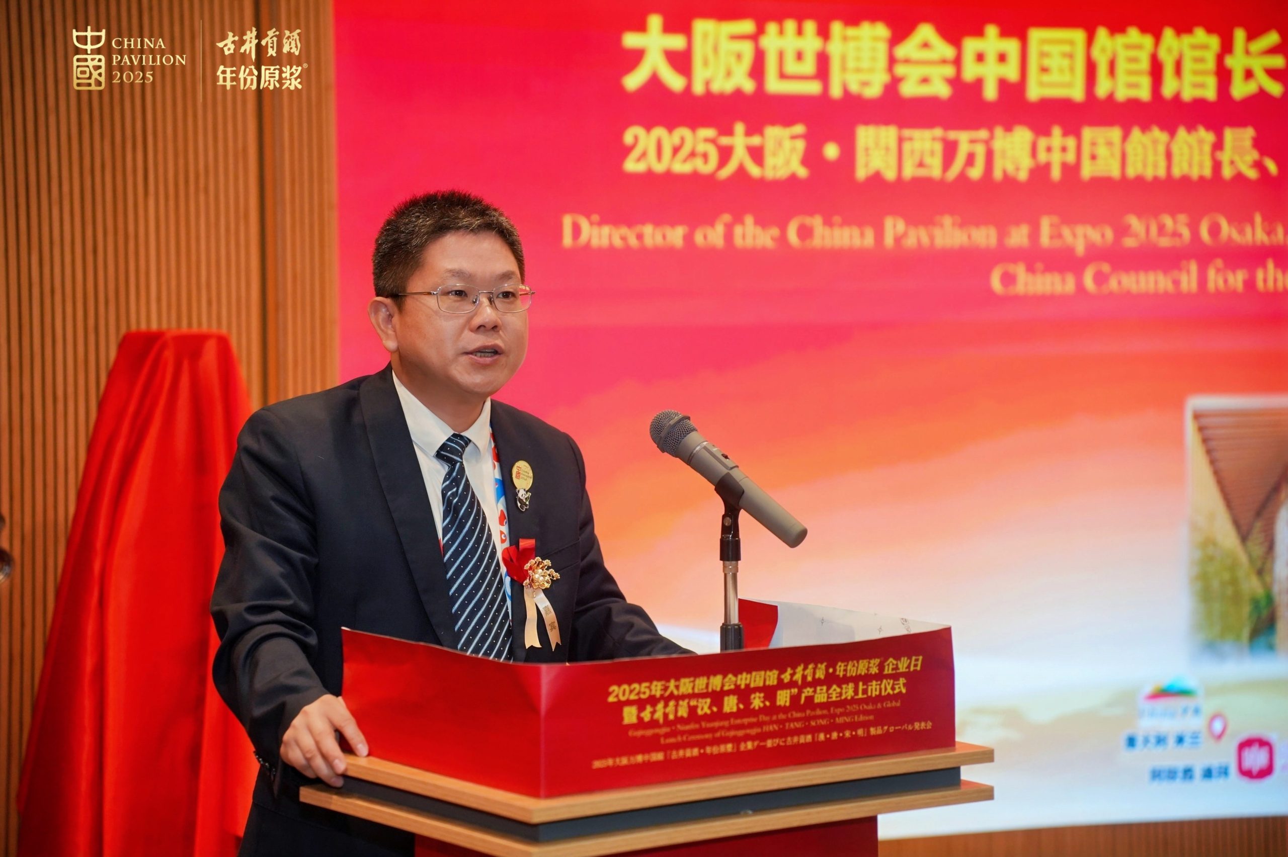 大阪世博会中国馆馆长、中国贸促会展览管理部部长邬胜荣在致辞中高度评价古井集团六届世博之旅,他指出,“从2010年上海世博会至今,古井贡酒这份长达十五年的执着与支持,不仅是古井贡酒对世博会平台的深情守护,更是一家中国民族企业从参与世博到走向世界的精彩旅程”。