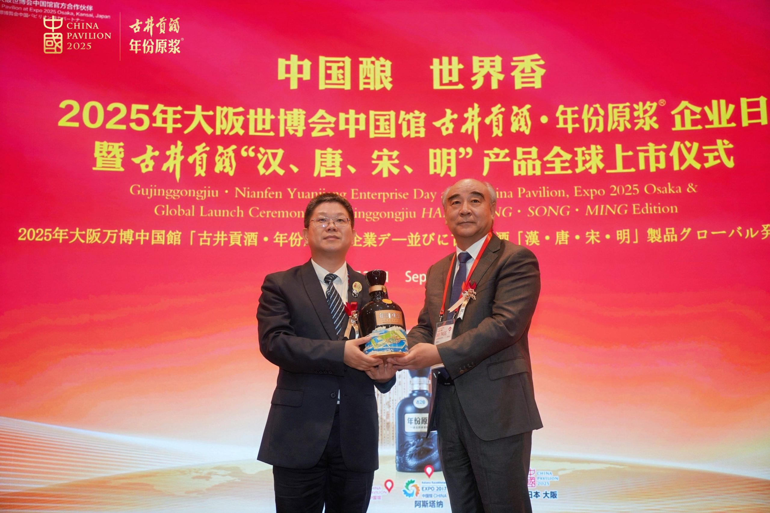 世界有盛事,古井贡美酒!继 2025年6月2日古井贡酒第一次以“企业日”身份亮相日本大阪世博会后, 9 月 26 日大阪世博会中国馆第二次迎来 “古井贡酒年份原浆企业日” 暨古井贡酒 “汉、唐、宋、明” 新品全球上市仪式。一场跨越千年的美酒文明对话,在此精彩呈现,开启中国白酒国际化的新篇章。